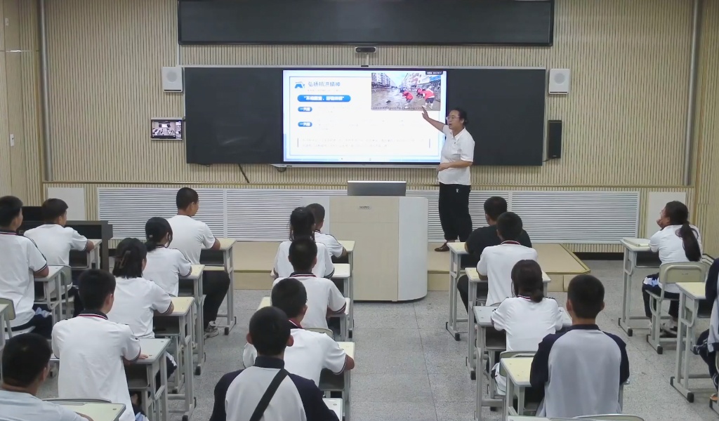 在临江市职业技术学校高一一班教室内,班主任王雪珊正在为同学们讲述抗洪救灾中的故事,“通过主题班会的形式,把这种抗洪精神力量传递给同学们,希望他们无论今后遇到什么困难,都能够坚韧不拔、敢于胜利。”