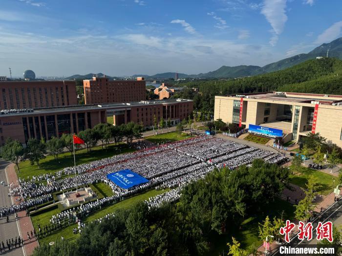 9月1日,国科大2024级新生开学典礼举行,校园内迎新氛围浓郁,当日天气晴好,可远眺长城。中新网记者 孙自法 摄