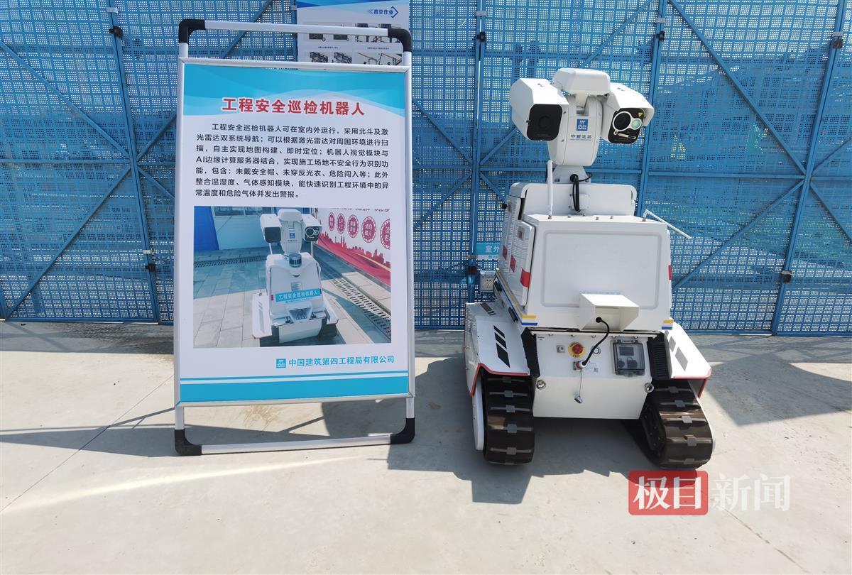 安全巡检机器人用北斗导航系统和激光雷达双系统导航,“头部”有3个摄像头,用摄像头等视觉模块与AI边缘计算服务器结合,识别拍照场地内未戴安全帽、未穿反光衣等不安全行为。这是中建四局钟祥市综合交通客运枢纽一期项目的“绝招”。今年6月,湖北省住建系统安全生产月观摩活动钟祥分会场在该项目举办。