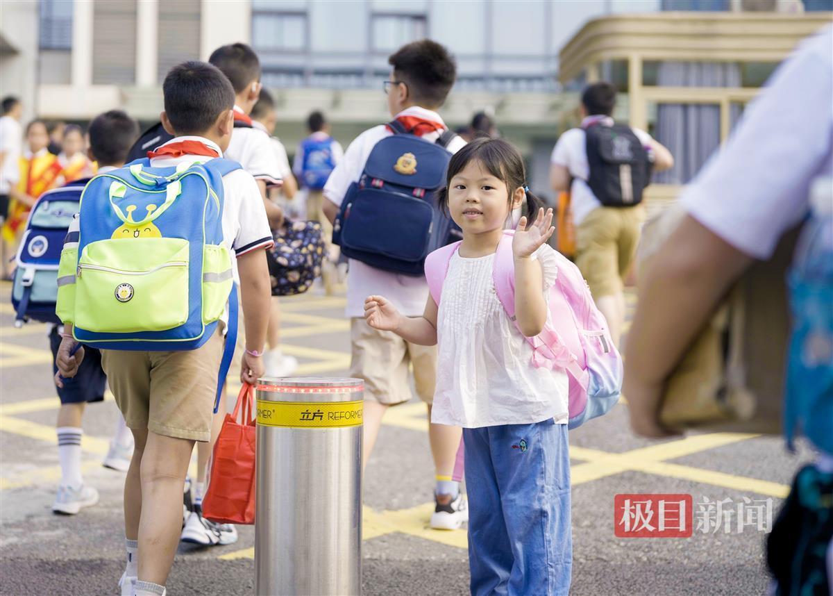 华师附小南湖校区,一年级新生入校前向家长挥手