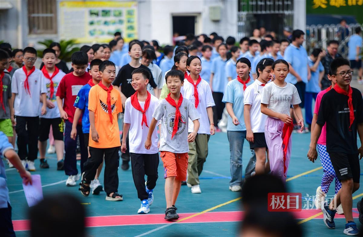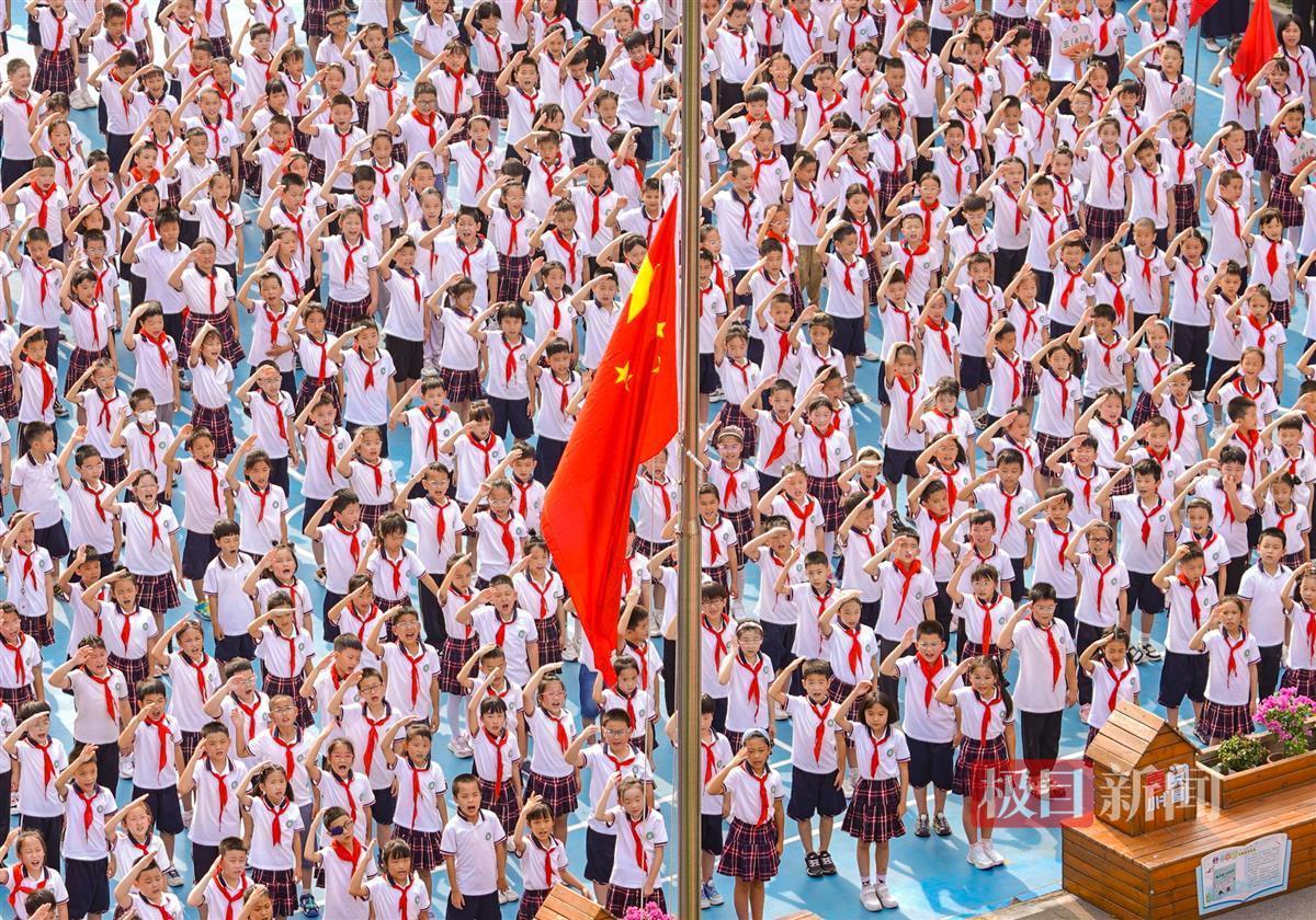 武汉市鲁巷实验小学升旗仪式,全体师生肃立