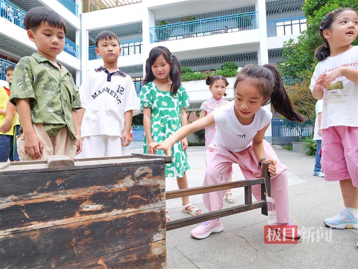 我们开始对比不同的文具,回忆红领巾的系法,反复感受书包的重量……
