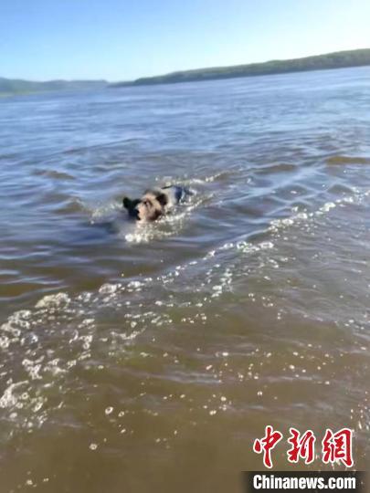 一只黑熊从对岸俄罗斯境内下水,横渡中俄界江黑龙江。 伊春边境管理支队供图