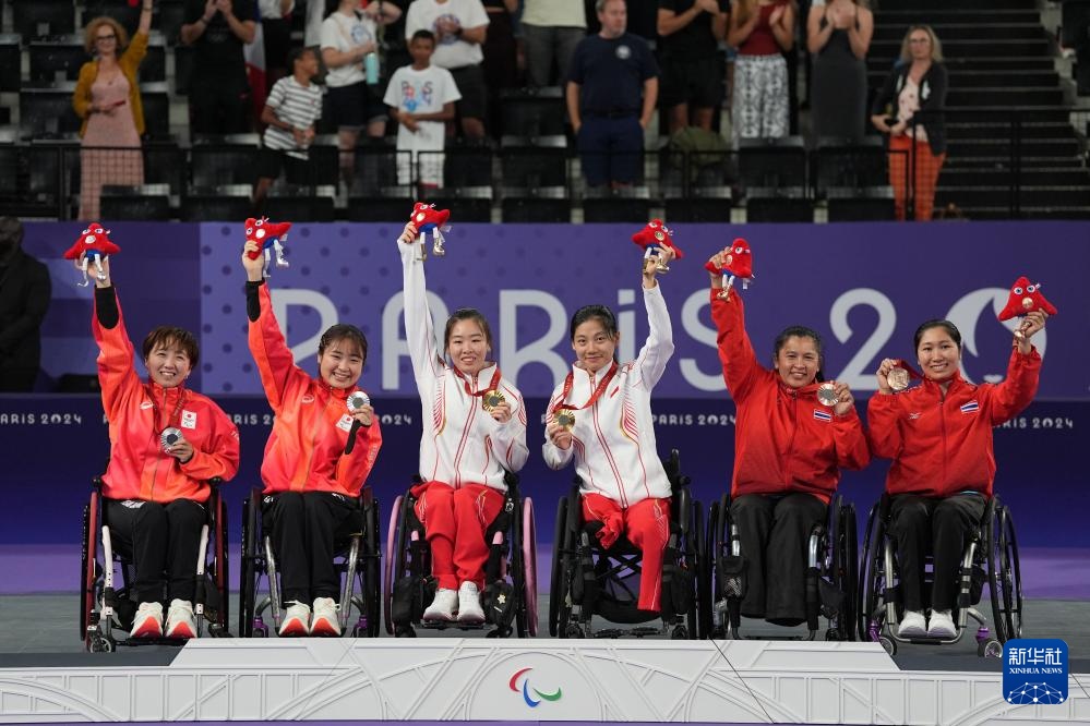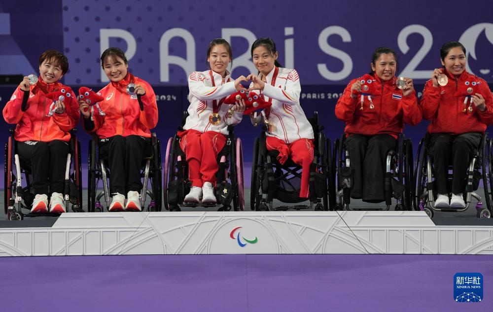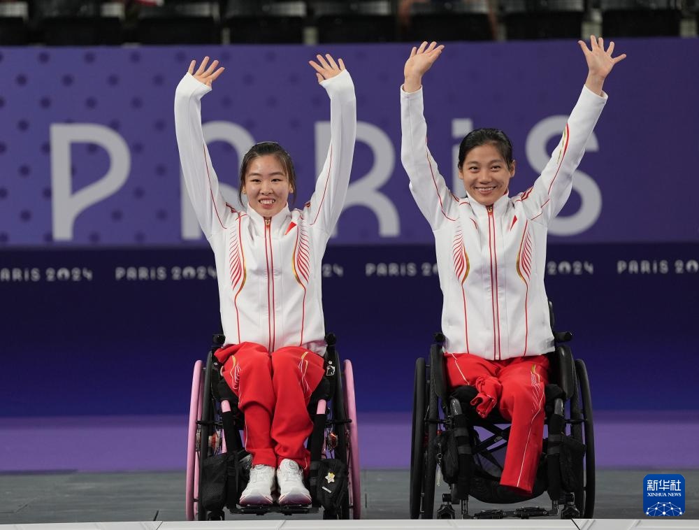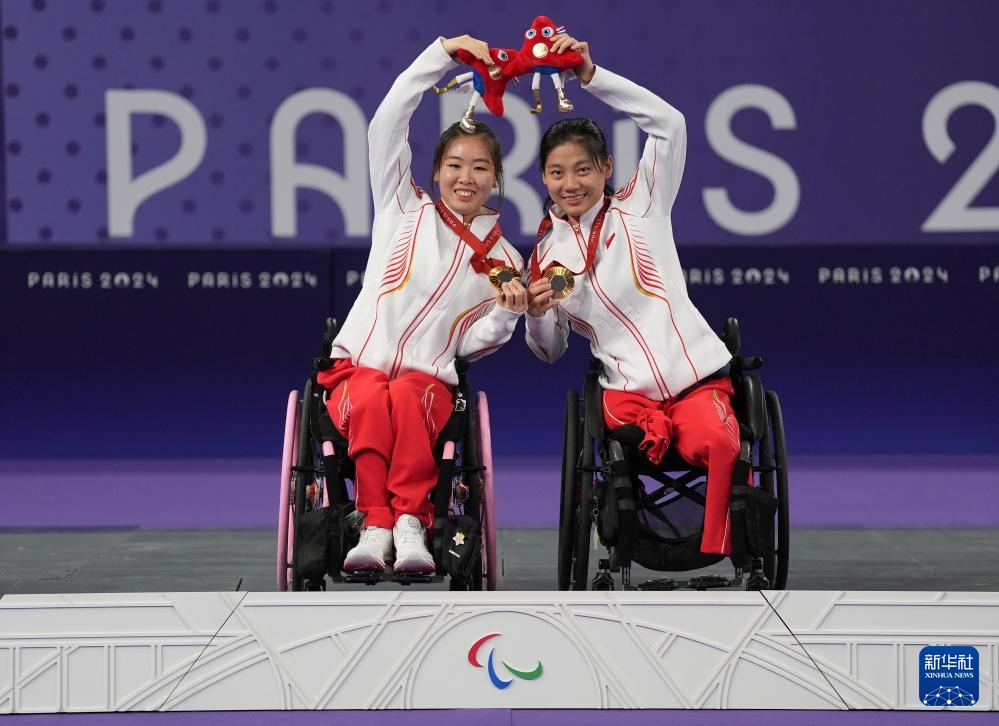 当日,巴黎残奥会羽毛球女子双打WH1-WH2级决赛颁奖仪式在拉夏贝尔门体育馆举行。