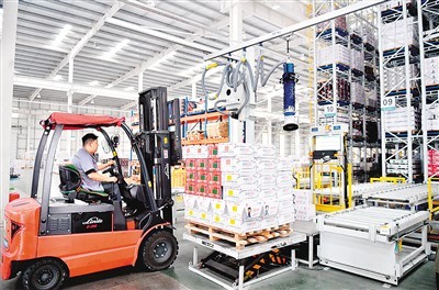 河北省邯郸市永年区生产的紧固件出口110多个国家和地区。图为当地一家紧固件生产企业的工人在智能仓储车间内搬运货物。新华社记者 王 晓摄