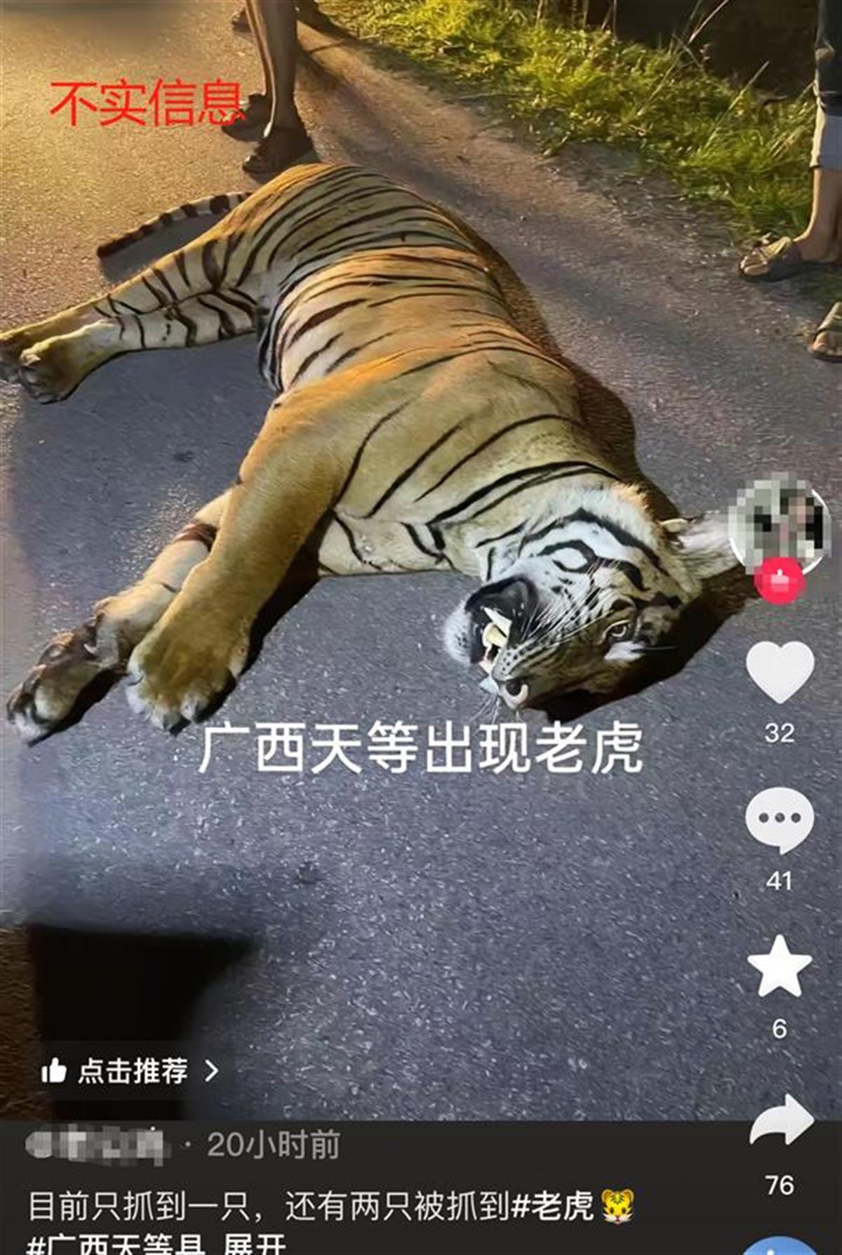 9月2日,有网友发文称,广西壮族自治区崇左市天等县上映乡出现老虎。3日下午,上映乡政府回应极目新闻记者,“当地出现老虎”情况不实,初步排查系小型猫科动物,目前仍在进一步排查当中。
