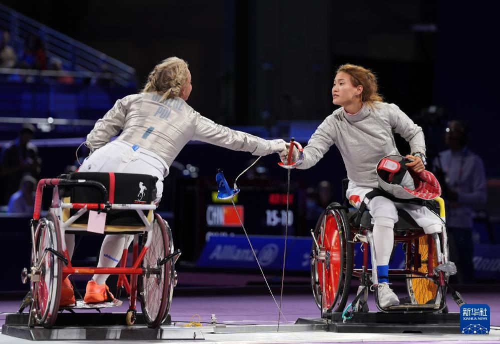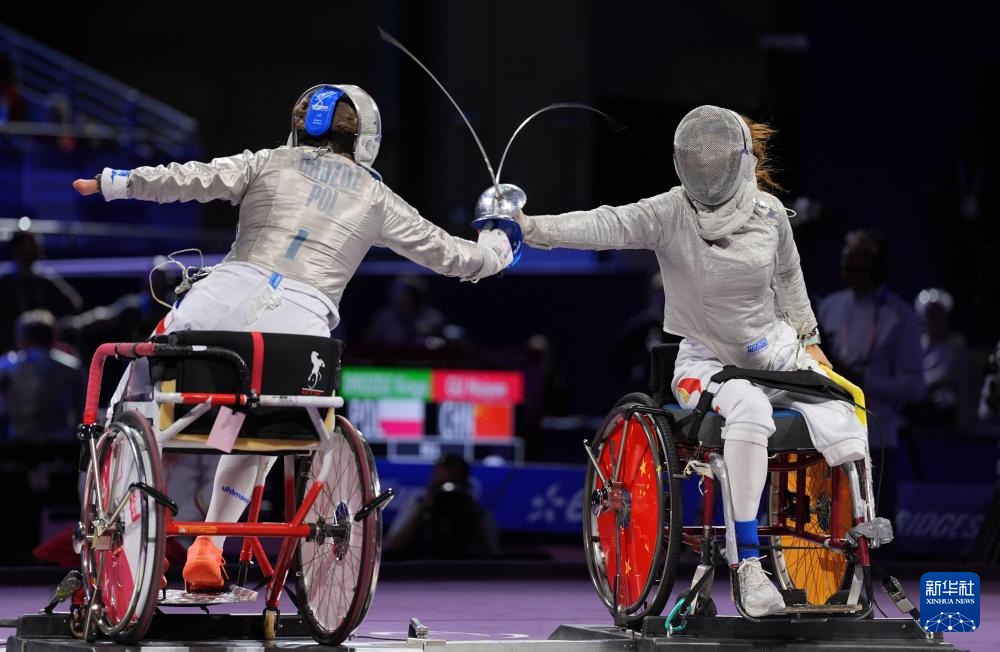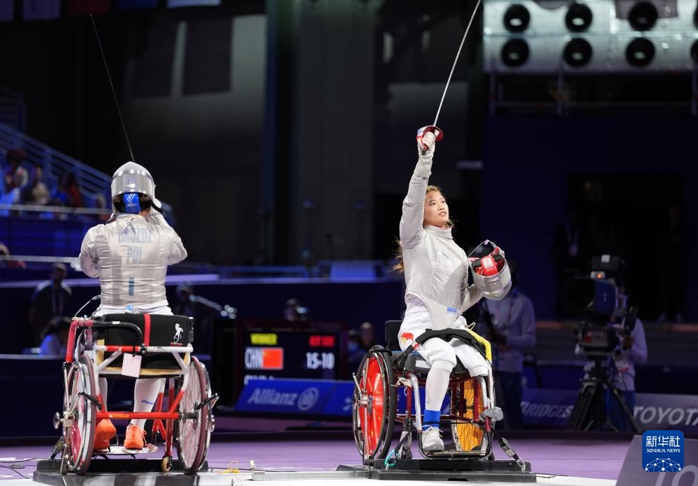 当日,在巴黎残奥会女子佩剑个人A级决赛中,中国选手辜海燕15比10战胜波兰选手德罗日季,获得冠军。