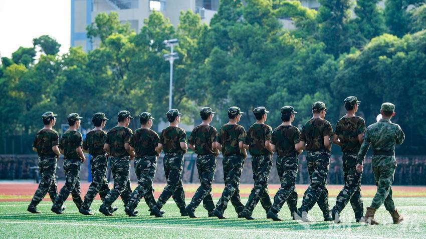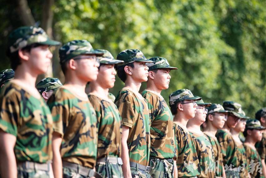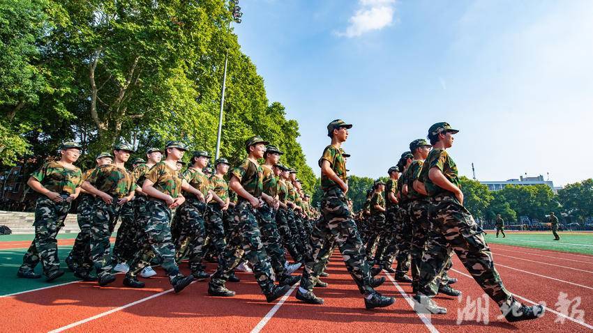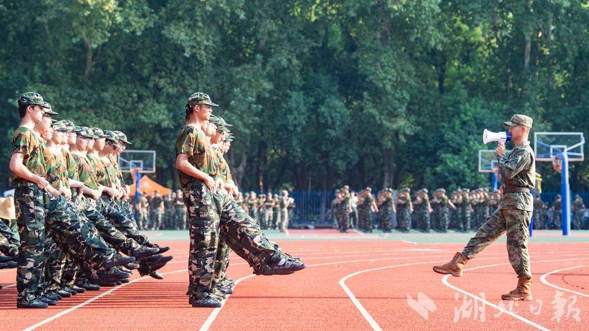 2024年9月4日,武汉气温逼近40°C,华中农业大学2024级的4904名本科新生顶着烈日在操场上开展军训。同学们不畏炎热,在教官的带领下以饱满的精神状态、昂扬的姿态磨砺自我,淬炼意志。据了解,华中农业大学2024级本科生军训于9月1日至21日举行,为期21天。军训教学科目涵盖了全要素教学内容。除队列训练、内务训练、方队拳术等基础训练外,还将开展实弹射击训练、消防安全演练、综合式野外拉练、战场医疗救护等训练,并开展“庆祝新中国成立75周年”青春歌会活动。此外,军训还增设识图用图、野外生存、定向越野、核生化防护以及狮山军事荟等环节,强化学生的生存生活技能。(湖北日报全媒记者 何宇欣 通讯员 刘涛 摄)