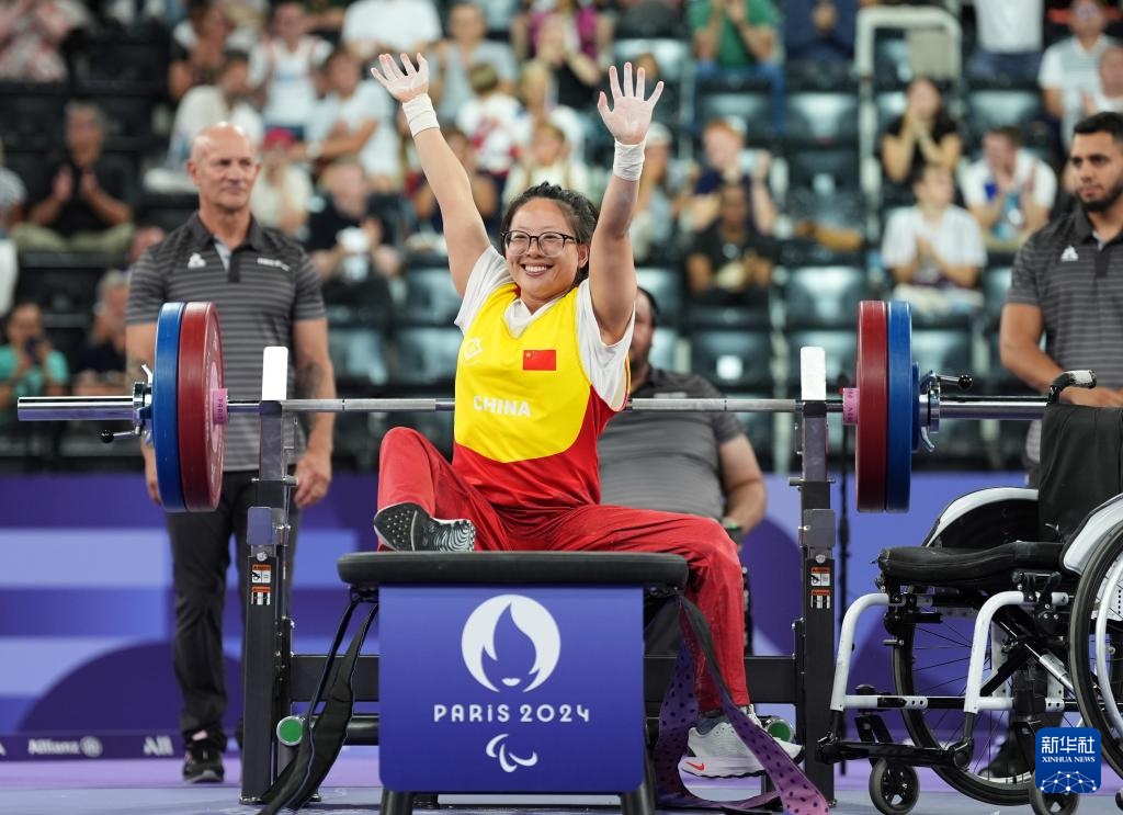 当日,在巴黎残奥会举重女子41公斤级比赛中,中国选手崔哲以119公斤的成绩夺得冠军。