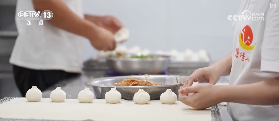 早晨7时30分许,城市渐渐喧闹起来,但在“慢娃儿”包子铺的操作间,安静却成了主旋律。员工们没有语言交流,每天需要制作的包子种类已经提前用马克笔写在了白板上。要做好一个生坯包子,需要和面、压面、包制、发酵等10余道工序,操作间里的3位年轻人仅凭简单的眼神交流,就能合力完成。不到30分钟,一板包子便被送进发酵设备中。