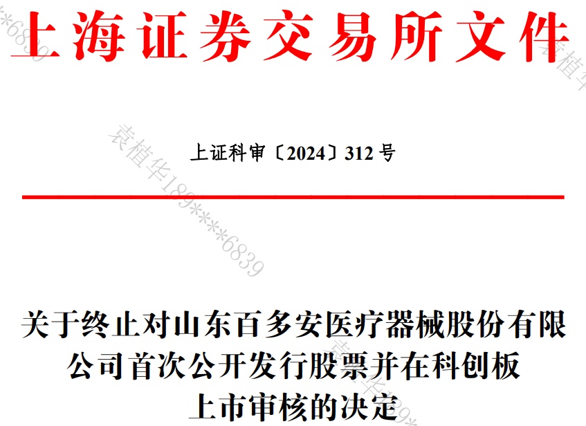 中国经济网北京9月5日讯 上交所网站昨日披露关于终止对山东百多安医疗器械股份有限公司(简称“百多安”)首次公开发行股票并在科创板上市审核的决定。