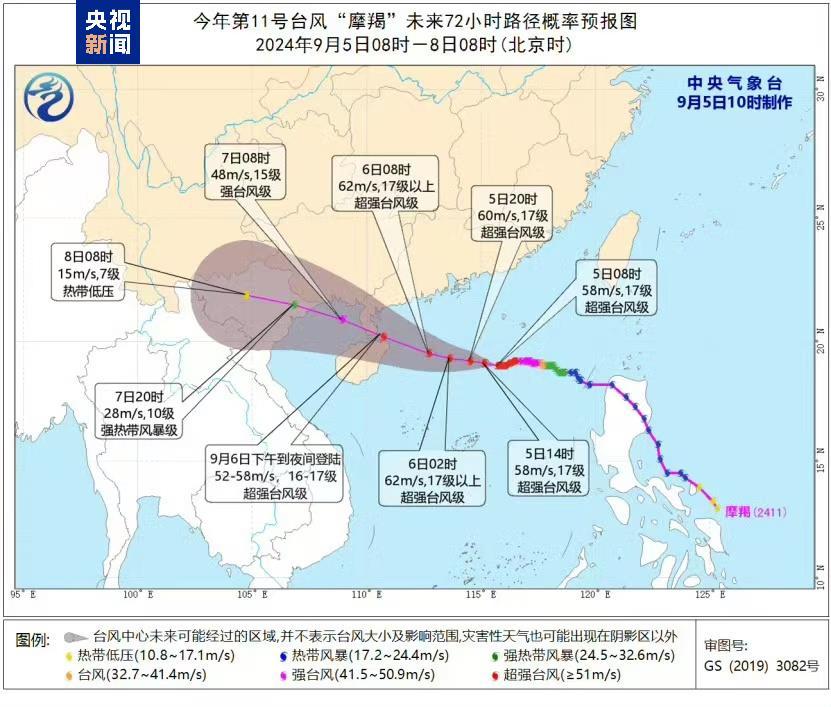 9月5日10时,中央气象台发布台风红色预警,台风“摩羯”将于6日下午至夜间在海南琼海到广东电白一带沿海登陆(超强台风级,16级—17级)。