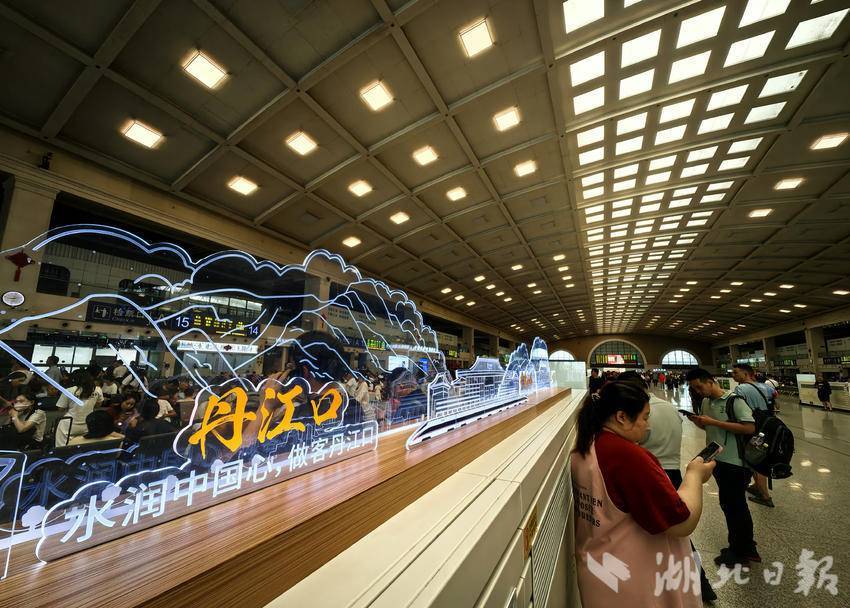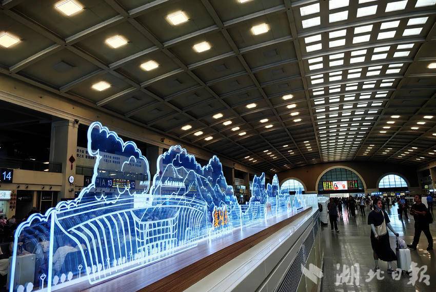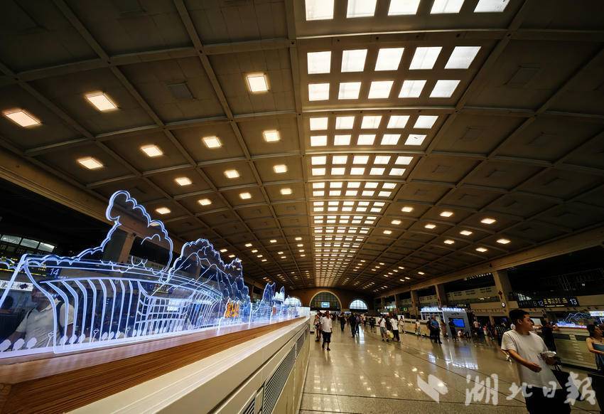 9月5日,汉口火车站候车大厅内,汉十高铁沿线城市的水晶造型分列通道两侧,在灯光的照射下格外醒目。汉十高铁开通以来,极大方便了湖北中西部城市连接,2026年西十高铁开通后,将进一步缩短武汉、十堰、西安等城市的距离,加快湖北旅游文化圈的高质量发展。