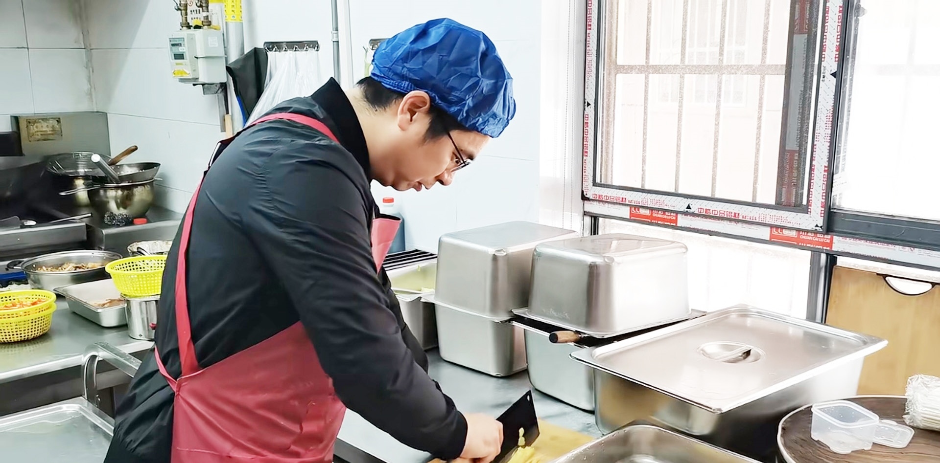何凡在食堂后厨切菜