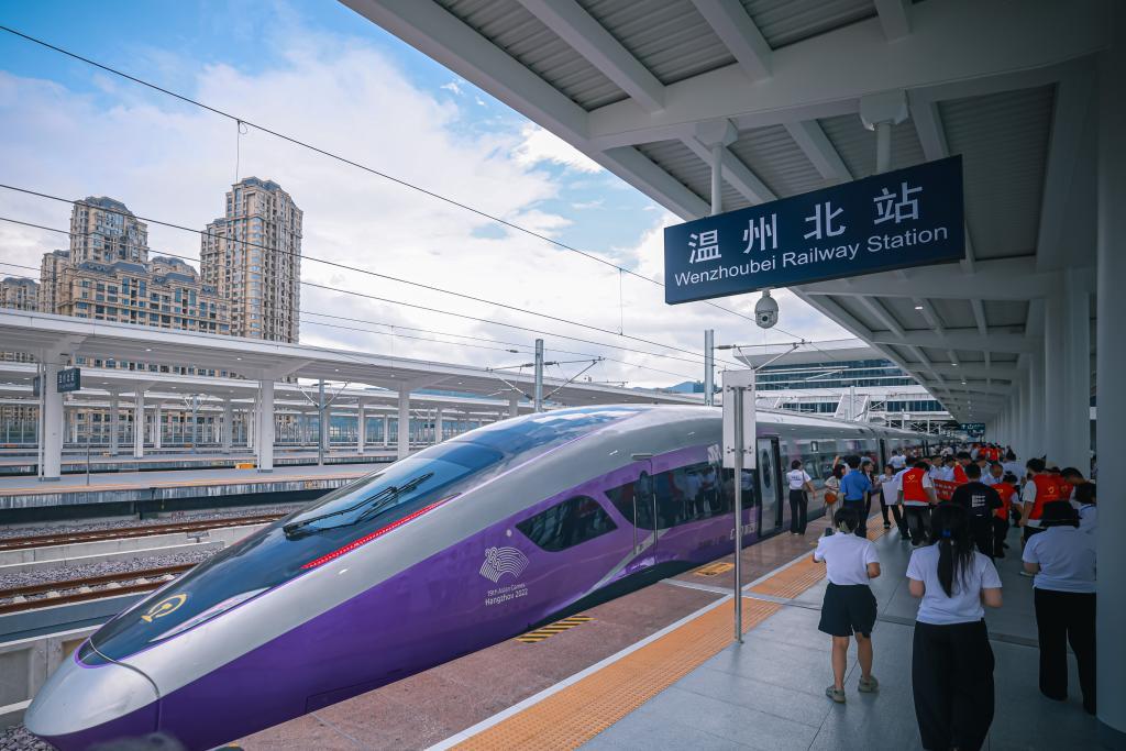 9月6日,从杭州西站开出的首发列车抵达温州北站。新华社记者 江汉 摄