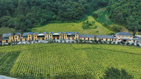 ④8月25日,竹溪县泉溪镇坝溪河村,大片烟叶与古朴的村居相映成趣。通讯员章伟谢小米摄