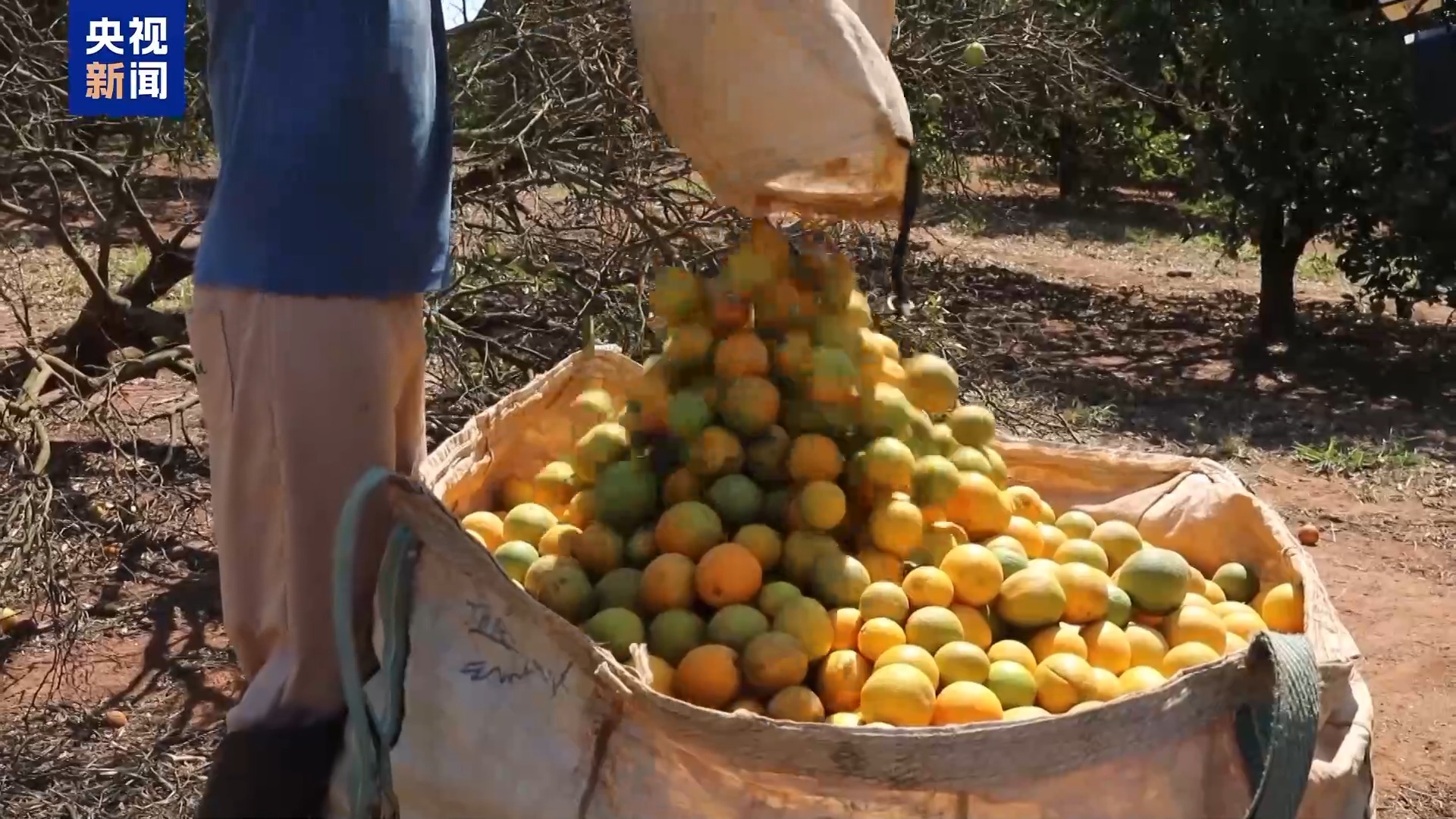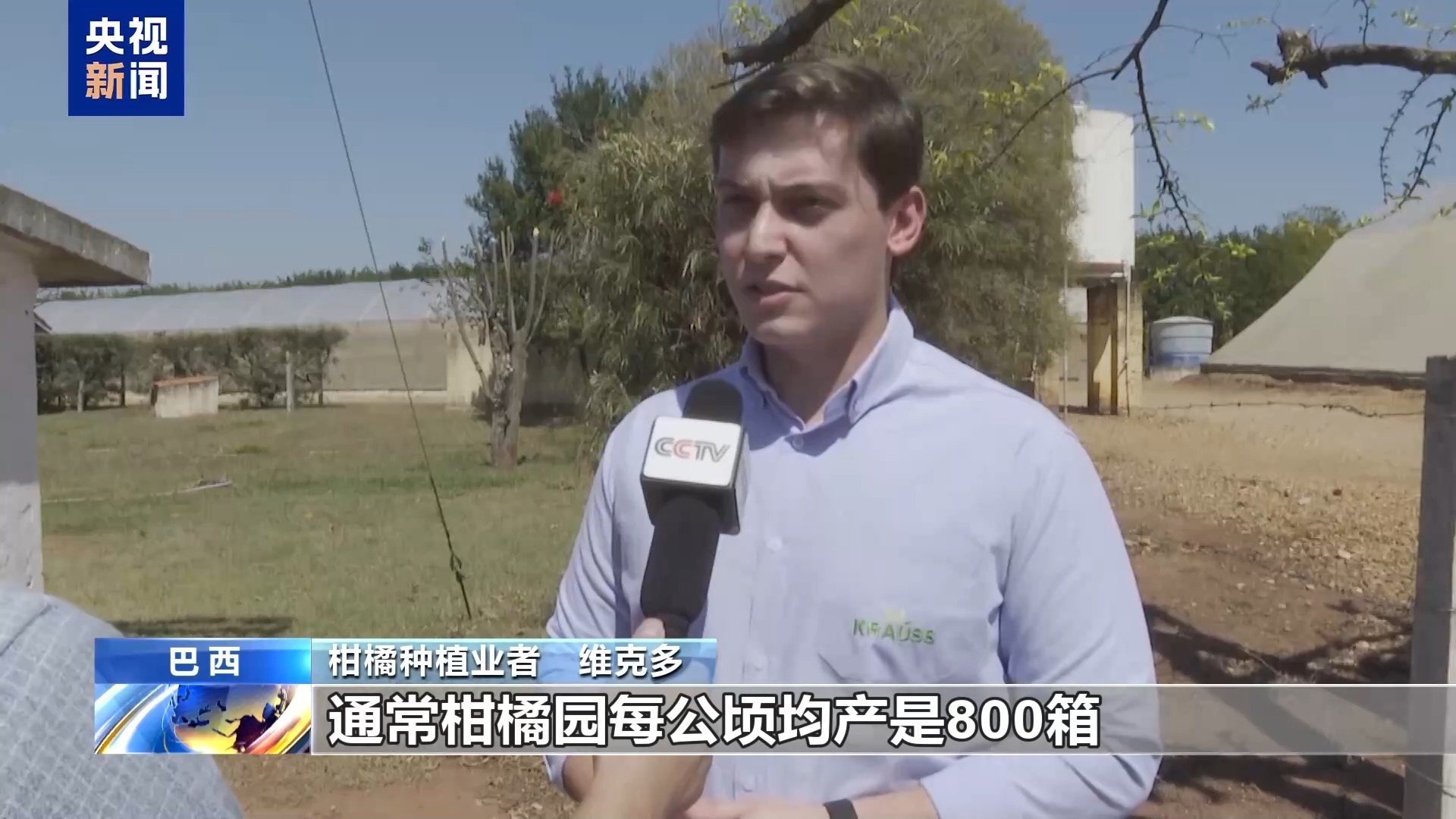 总台记者 雷湘平:我现在正在巴西圣保罗州卡萨布兰卡市的一个柑橘种植园,这里是巴西柑橘主产区之一。当地大量的柑橘树感染了黄龙病,感染率达到了80%以上。当地黄龙病的流行,再加上高温干旱天气的频发,导致当地柑橘园单位面积产量下降达30%。