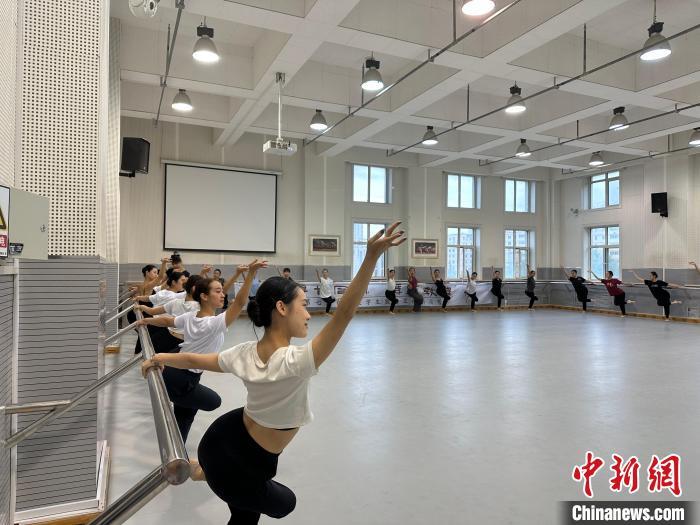 9月5日,“寻甘同味·舞乐敦煌”第七届台湾大学生敦煌文化研习营的营员们在西北民族大学进行敦煌舞学习。中新社记者 丁思 摄