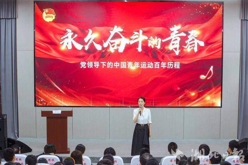 在宣讲授课环节,团省委副书记陈立担任主讲嘉宾,讲授“永久奋斗的青春”第100场主题青运史课。她带领青年深入学习党的二十大精神、习近平总书记关于青年工作重要思想,并系统回顾一百多年来共青团团结带领一代又一代青年紧跟党走,为实现中华民族伟大复兴不懈奋斗的青春征程。
