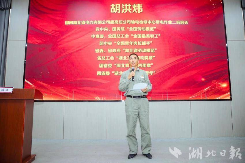 全国青联常委,全国劳模、国网湖北电力有限公司超高压公司带电作业班班长胡洪炜和中国青年志愿者优秀个人、“荆楚楷模”、黄石市公安局下陆分局治安管理大队应急机动辅警队副队长闫先锋作为青年榜样进行分享。