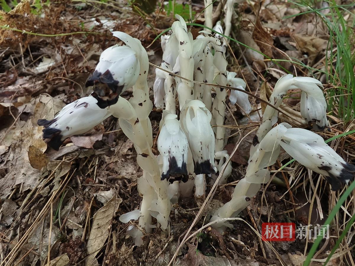 9月5日,湖北竹山县林业局技术人员在湖北堵河源国家级自然保护区开展森林蓄积量监测外业调查时,在位于该保护区小地名叫头坪的地方新增样地内,惊喜地发现5丛洁白无瑕,为白色半透明鳞片,枝茎和花朵呈现出晶莹剔透的状态,有若水晶状的烟斗,花朵微微下垂,在幽暗处散发着光,酷似兰花中的“仙草”,在场随同参与调查专班的堵河源保护区洪坪管理站站长袁孝文立即拍下照片和视频发给省、市林业专家确认,经专家鉴定,该物种为水晶兰,是国家近危级珍稀植物。