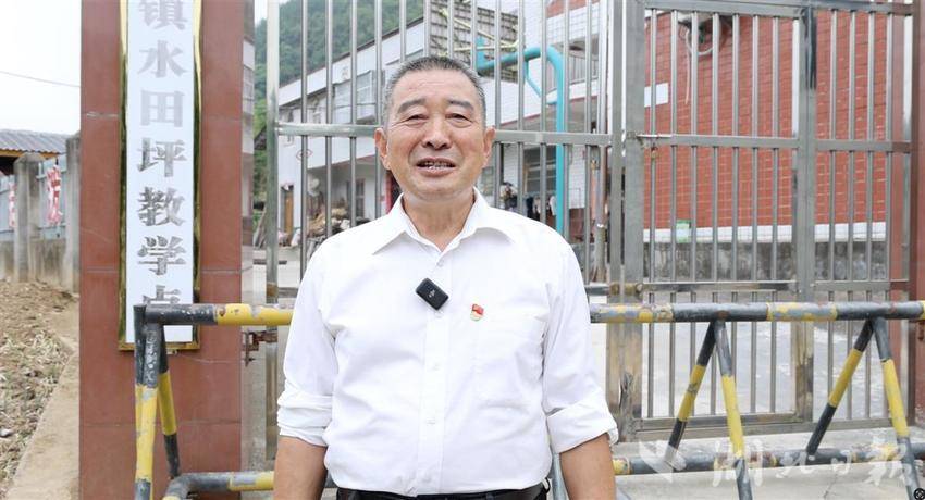 胡益明是水田坪村人,1978年初中毕业在水田坪小学担任民办教师,从此没有离开过这里。2002年,因生源不足,水田坪小学改为教学点。从最初的20多个学生,到现在的7个,胡益明一直是教学点上唯一的老师。2022年退休后,响应国家“银龄计划”(聘请退休教师重返岗位),又在教学点坚持干了2年。从参加工作第一天算起,他在本村的讲台上,坚守了整整46年,引领了三代人走进课堂,读书明理。