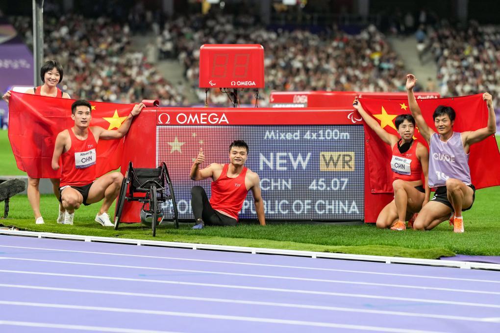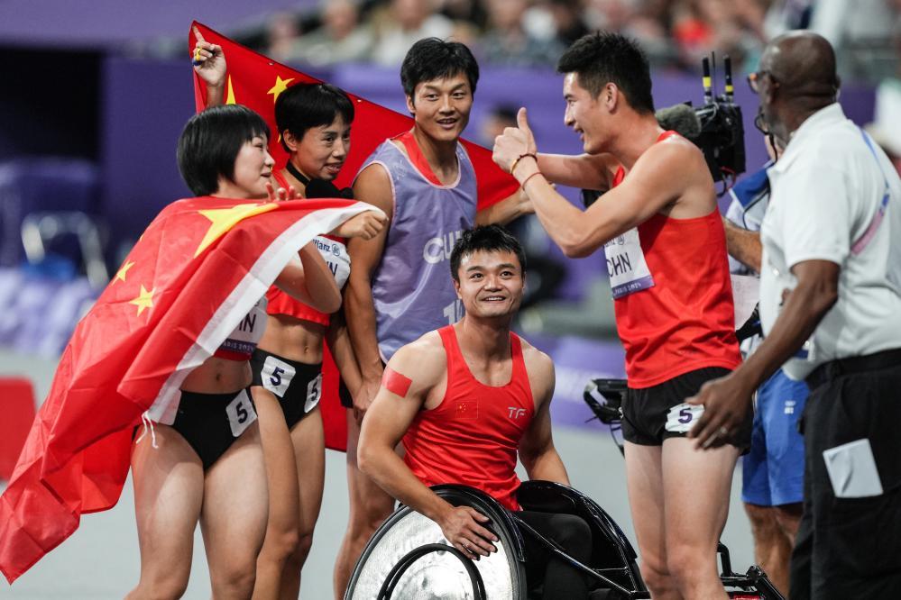 6日晚,由周国华、王浩、文晓燕和胡洋组成的中国队,出战残奥会田径比赛中唯一的集体项目——4X100米混合接力。该项目每支队伍由两男两女组成,他们必须是4种不同的残疾类型,分别为视力障碍、肢体障碍、脑性麻痹和需要竞速轮椅的选手。由于项目的复杂性和多样性,这无疑是残奥会田径赛场上最具观赏性的比赛之一。