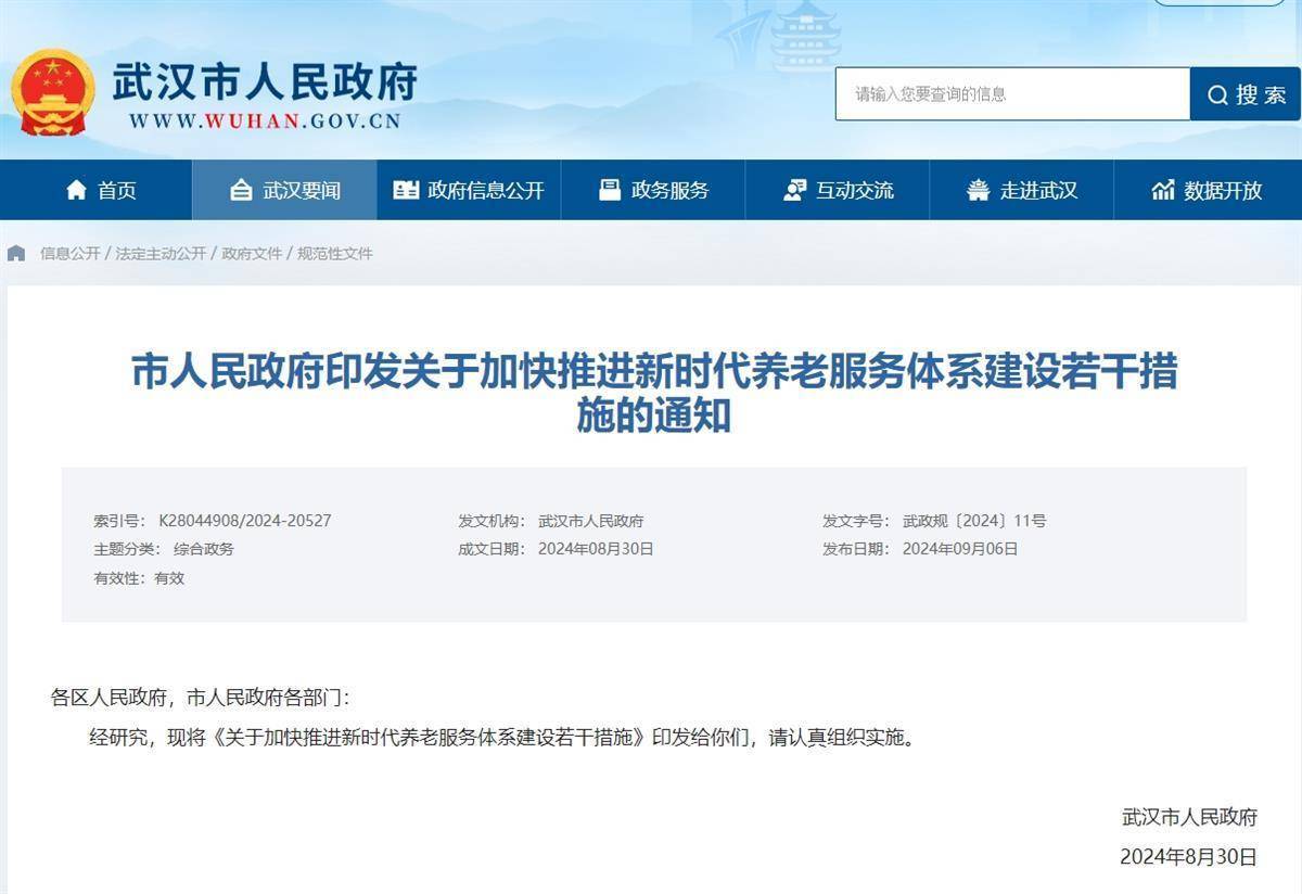 近日,武汉市人民政府网发布《关于加快推进新时代养老服务体系建设若干措施》,从六大方面推动养老事业和养老产业协同发展,其中提出到2025年底中心城区社区老年助餐服务全覆盖,到2026年,街道(乡镇)幸福食堂、中心城区社区老年助餐点、小区老年助餐服务全覆盖。原文具体如下: