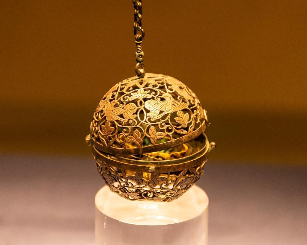 △葡萄花鸟纹银香囊 陕西历史博物馆藏