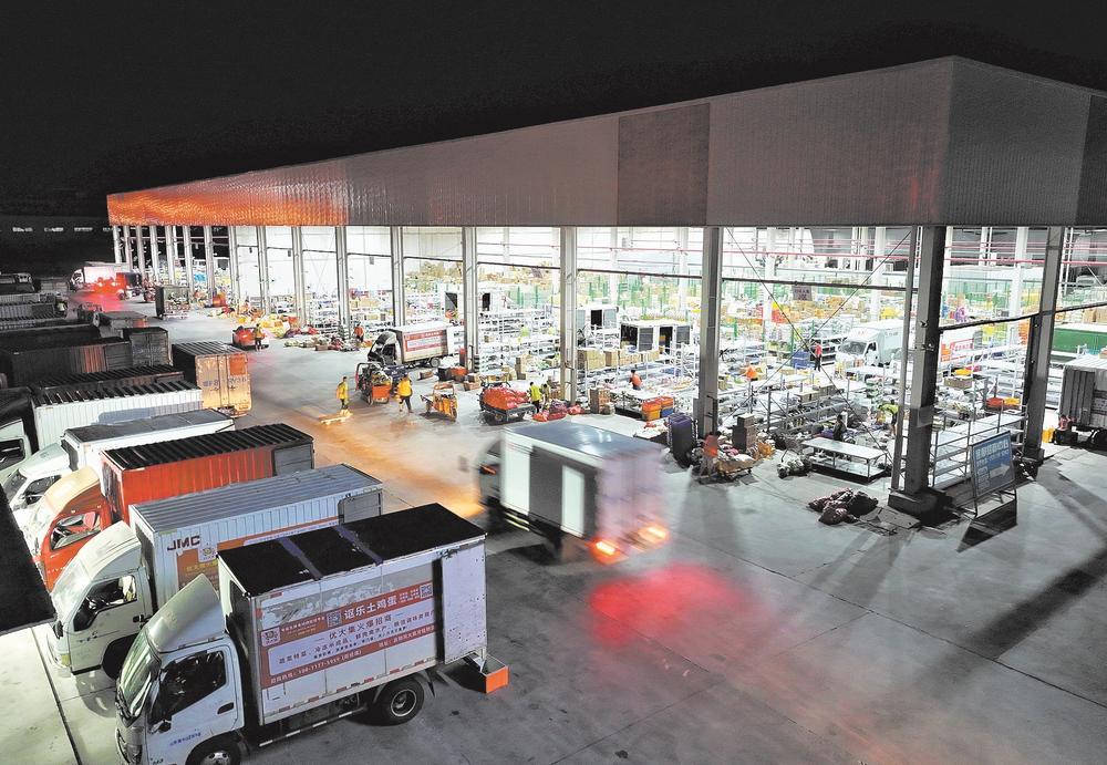 9月6日凌晨,位于樊城的优大集襄阳农产品电商物流园,工作人员正在分拣订单农产品。 全媒体记者 谢勇 通讯员 张沛 摄