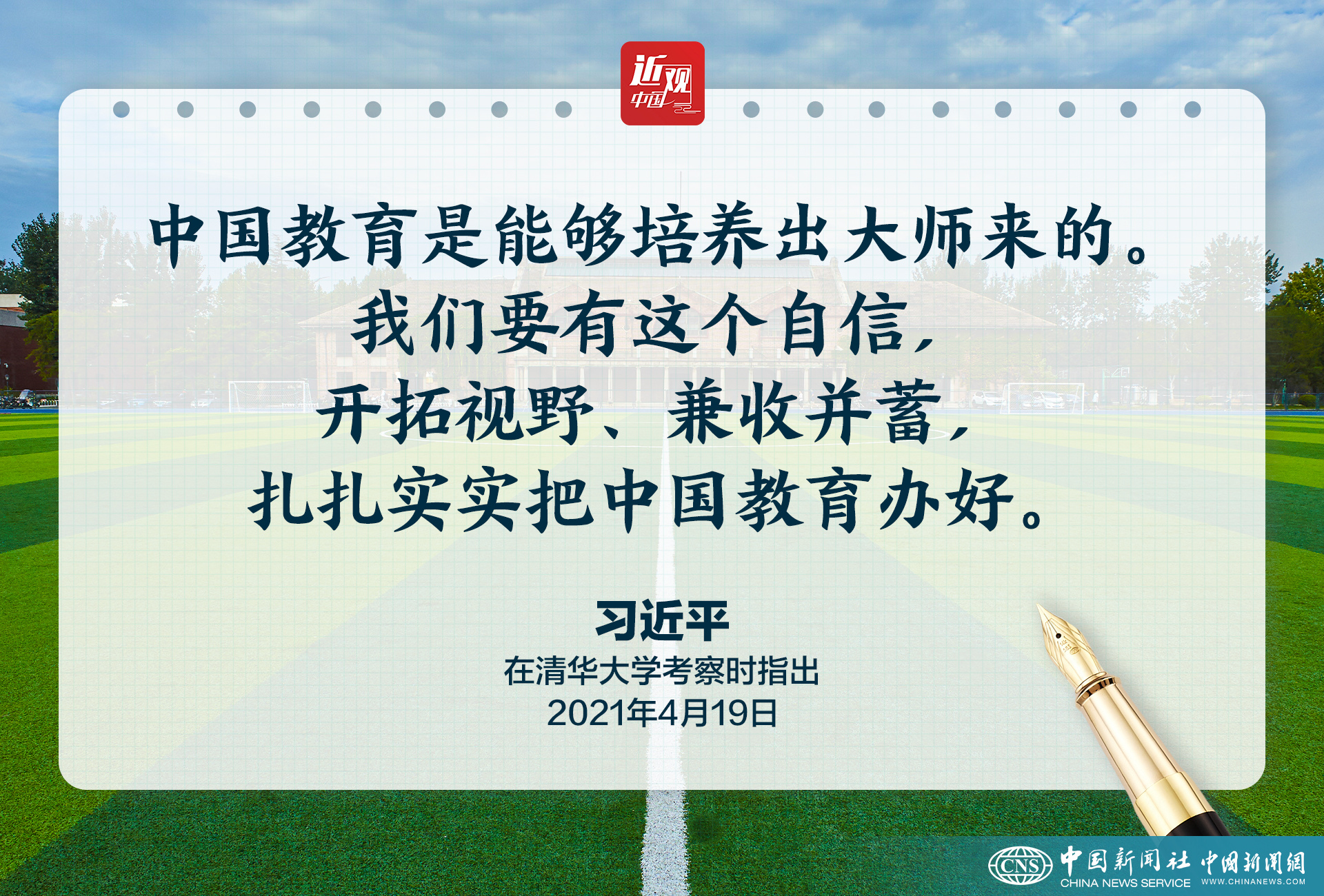习近平指出,中国教育是能够培养出大师来的。我们要有这个自信,开拓视野、兼收并蓄,扎扎实实把中国教育办好。重大原始创新成果往往萌发于深厚的基础研究,产生于学科交叉领域,大学在这两方面具有天然优势。要保持对基础研究的持续投入,鼓励自由探索,敢于质疑现有理论,勇于开拓新的方向。
