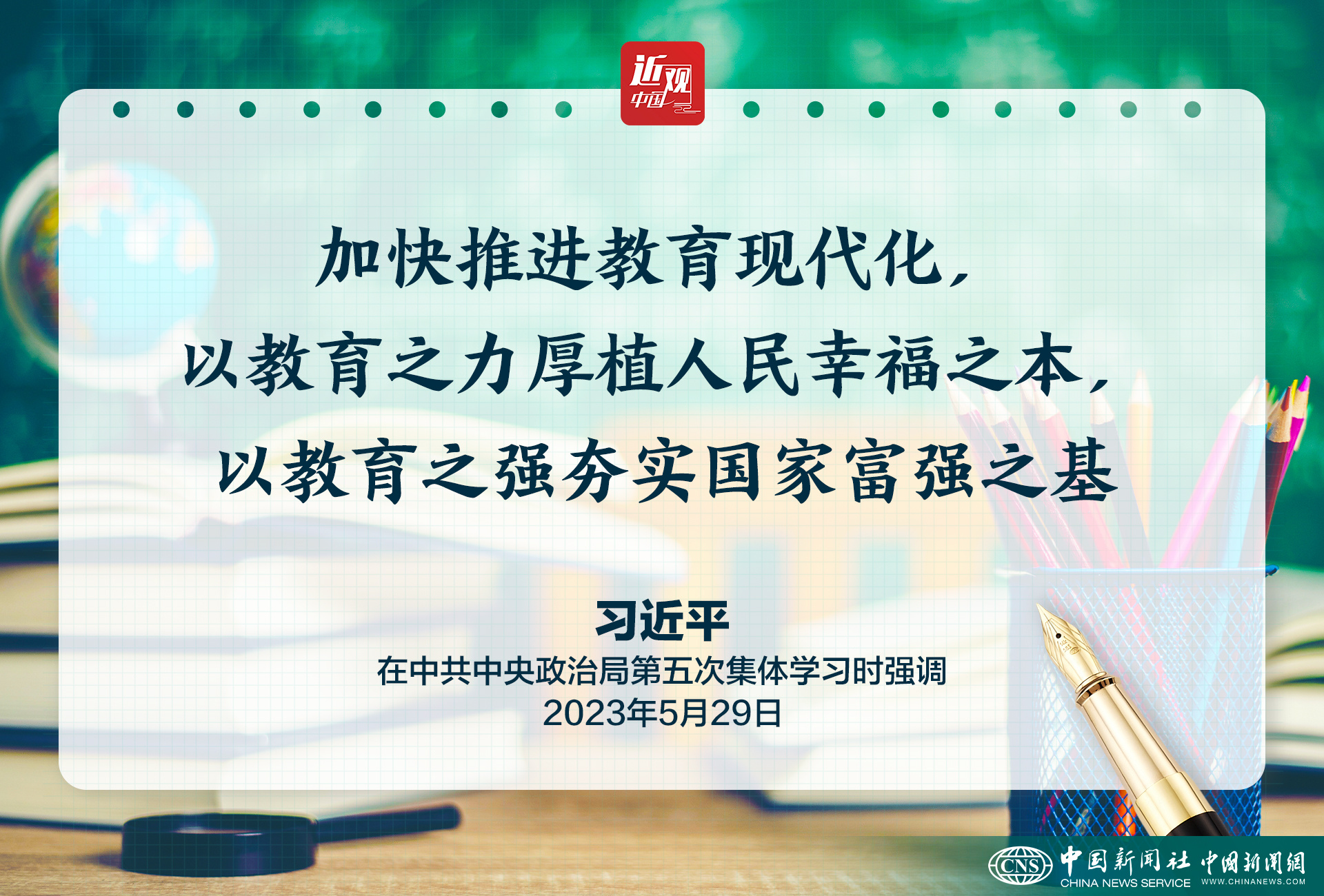 2023年5月29日,中共中央政治局就建设教育强国进行第五次集体学习。中共中央总书记习近平在主持学习时强调,教育兴则国家兴,教育强则国家强。建设教育强国,是全面建成社会主义现代化强国的战略先导,是实现高水平科技自立自强的重要支撑,是促进全体人民共同富裕的有效途径,是以中国式现代化全面推进中华民族伟大复兴的基础工程。要全面贯彻党的教育方针,坚持以人民为中心发展教育,主动超前布局、有力应对变局、奋力开拓新局,加快推进教育现代化,以教育之力厚植人民幸福之本,以教育之强夯实国家富强之基,为全面推进中华民族伟大复兴提供有力支撑。