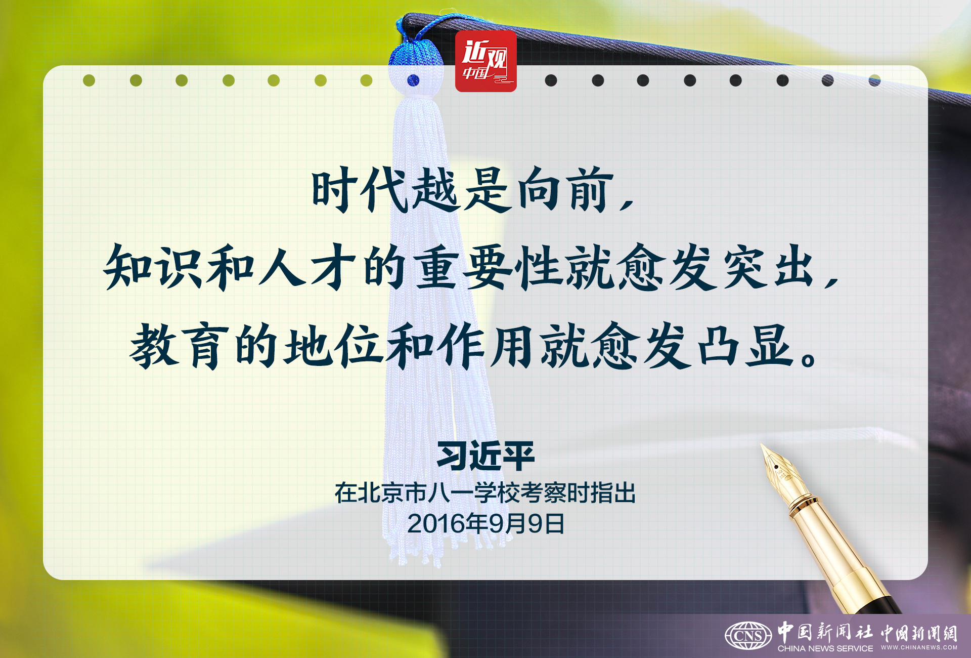 习近平指出,时代越是向前,知识和人才的重要性就愈发突出,教育的地位和作用就愈发凸显。我国正处于历史上发展最好的时期,但要实现“两个一百年”奋斗目标、实现中华民族伟大复兴的中国梦,必须更加重视教育,努力培养出更多更好能够满足党、国家、人民、时代需要的人才。