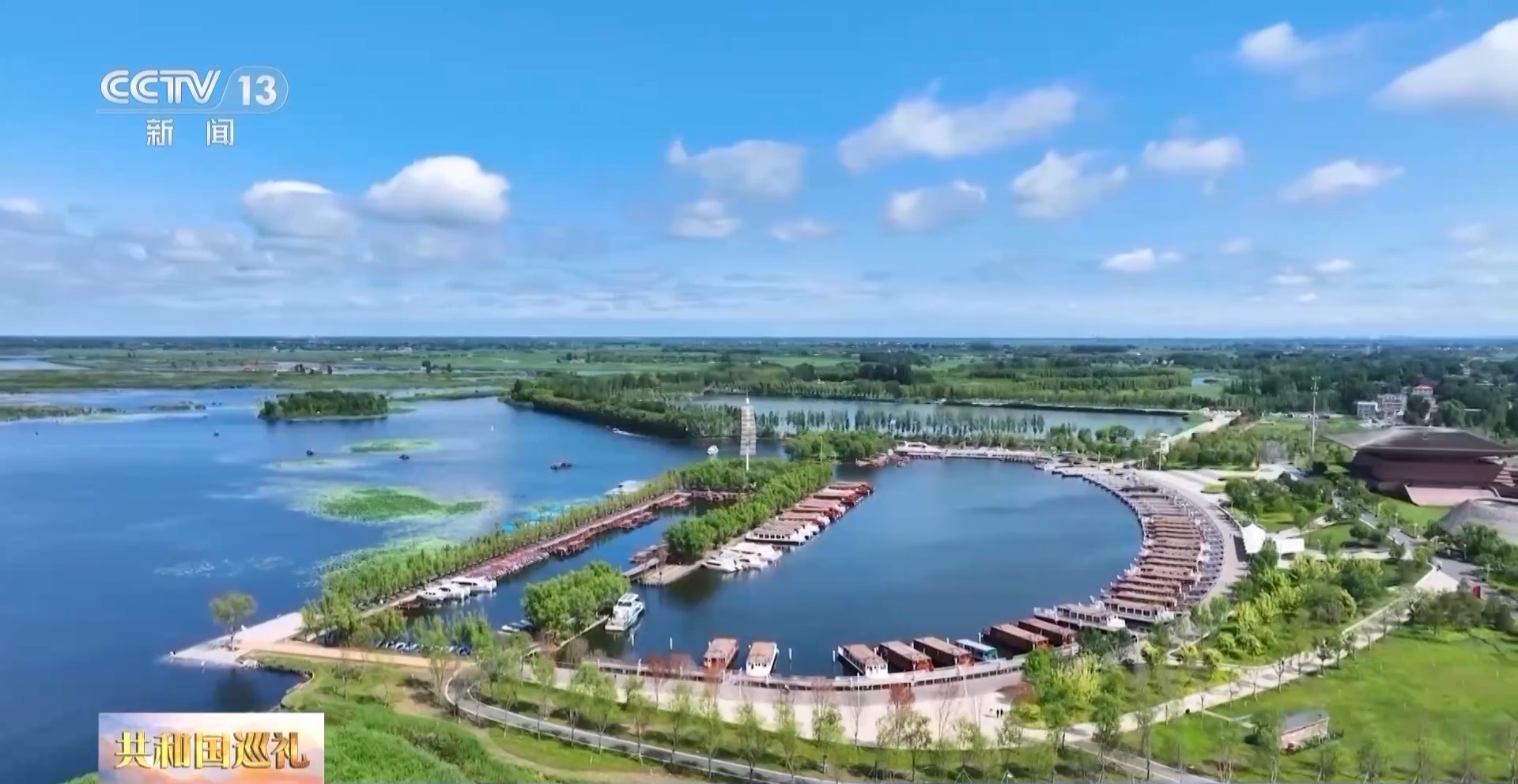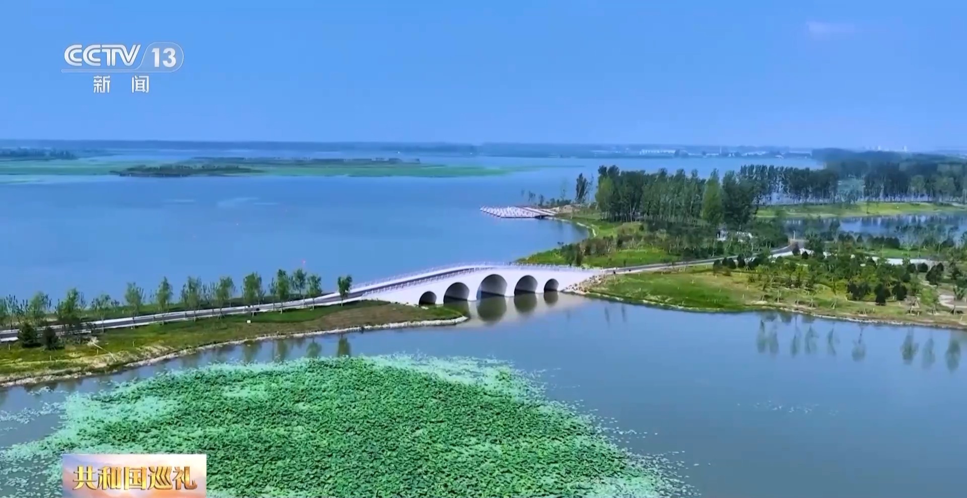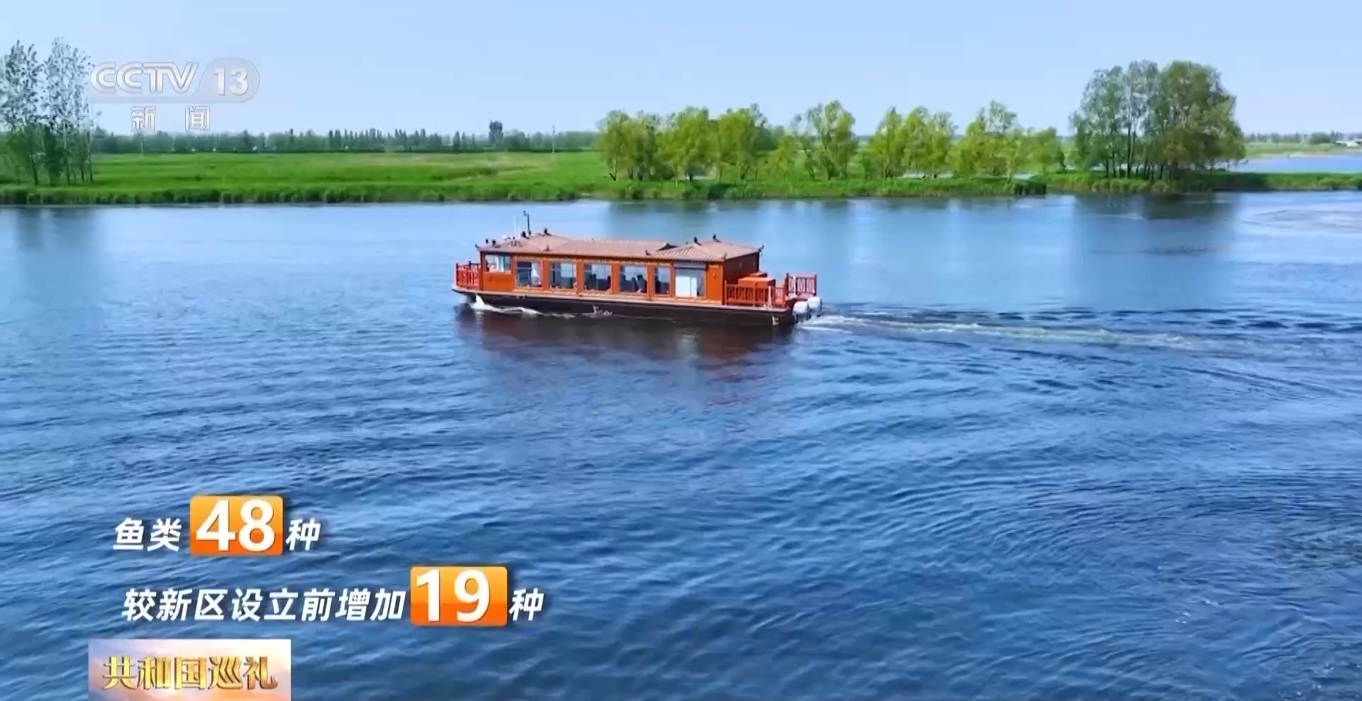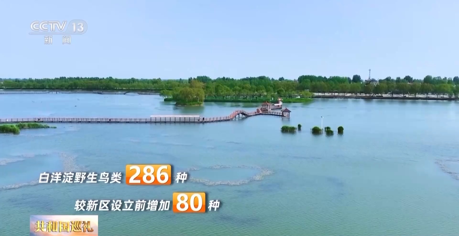 总台记者 周阳:此刻在我们下方是出现了一大片的水域,“华北明珠”白洋淀到了。从低空去俯瞰白洋淀,水面是泛着碧波,淀区一片绿意盎然,跟远处的雄安的城区相伴,构成了一幅“城淀相依 共生共融”的画卷。雄安新区自从设立以来,一直将绿色作为城市发展的底色,而白洋淀生态不断好转,便是新区交出的一份绿色答卷。