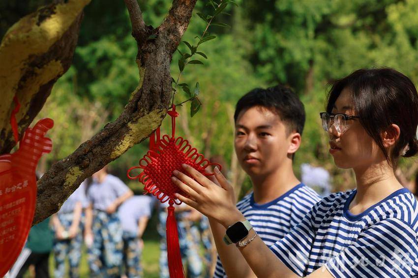 该校教育学院2024级本科生田海雪从家乡带来了黄河之水,她把黄河水浇灌在石榴树下,激动地说:“黄河与长江都是中华民族的母亲河,同学们将来自全国各地的团结之水浇灌到石榴林里,让人既激动又难忘。”
