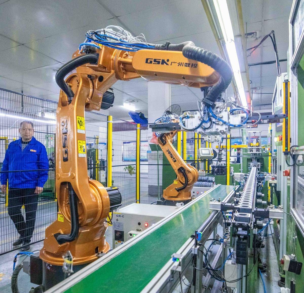 大冶湖高新区,黄石东贝电机有限公司内,机械臂有序运转,员工加紧赶制订单。(湖北日报全媒记者 薛婷 摄)