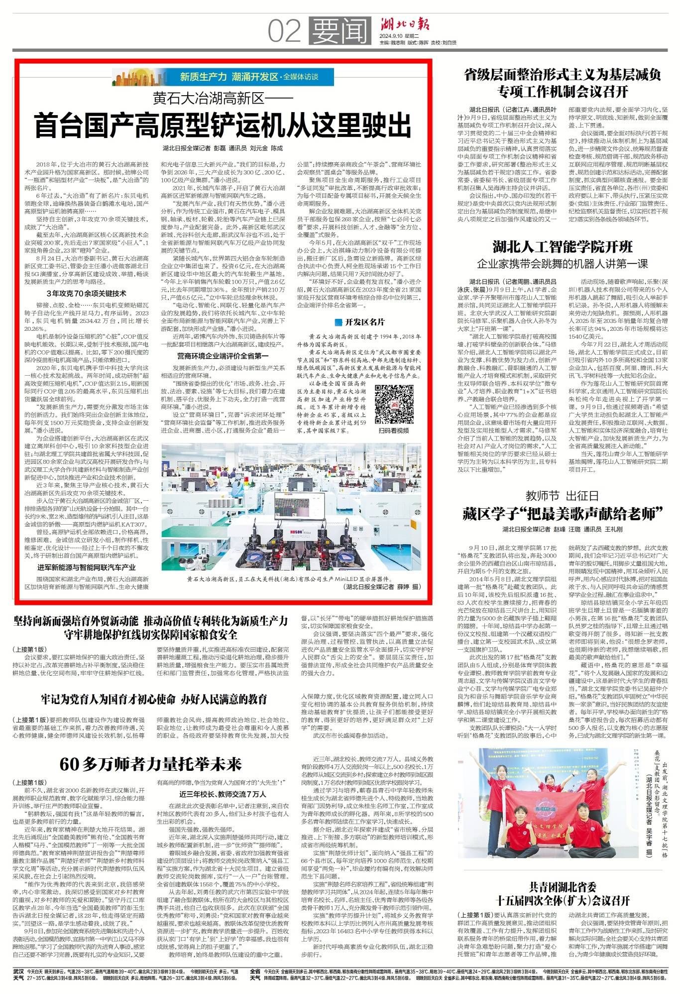 8月24日,大冶市委副书记、黄石大冶湖高新区党工委书记、管委会主任潘小进做客湖北日报5G演播室,分享高新区建设成效、举措,畅谈发展新质生产力的思考与路径。