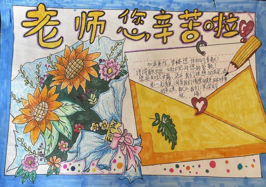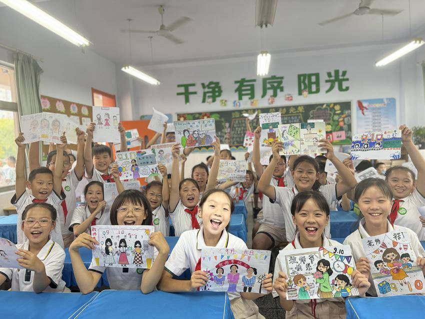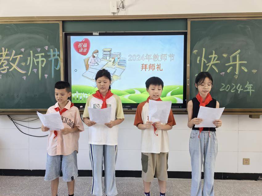 一至三年级的孩子们,有的通过温暖的拥抱向老师致谢,一张张师生拥抱照片展现浓浓师生情;有的精心制作贺卡或书信,贴在感恩墙上形成美丽风景;还有的用画笔描绘出心中最喜欢的老师。四至六年级也不逊色,主题班会“感恩师恩,共筑梦想”让师生心灵更加贴近;精美的手抄报“鲜花赠园丁 童心谢师恩”贴在教室外宣传栏,引人注目;“我和老师的故事”征文更是记录下温情瞬间。