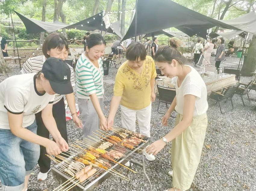 游戏结束后,老师们回到烧烤营地。炭火上的食材滋滋冒油,喷香的农家菜引人垂涎。你刷油来我撒料,你端菜来我倒酒……在欢声笑语中大家增进了解,拉近距离。
