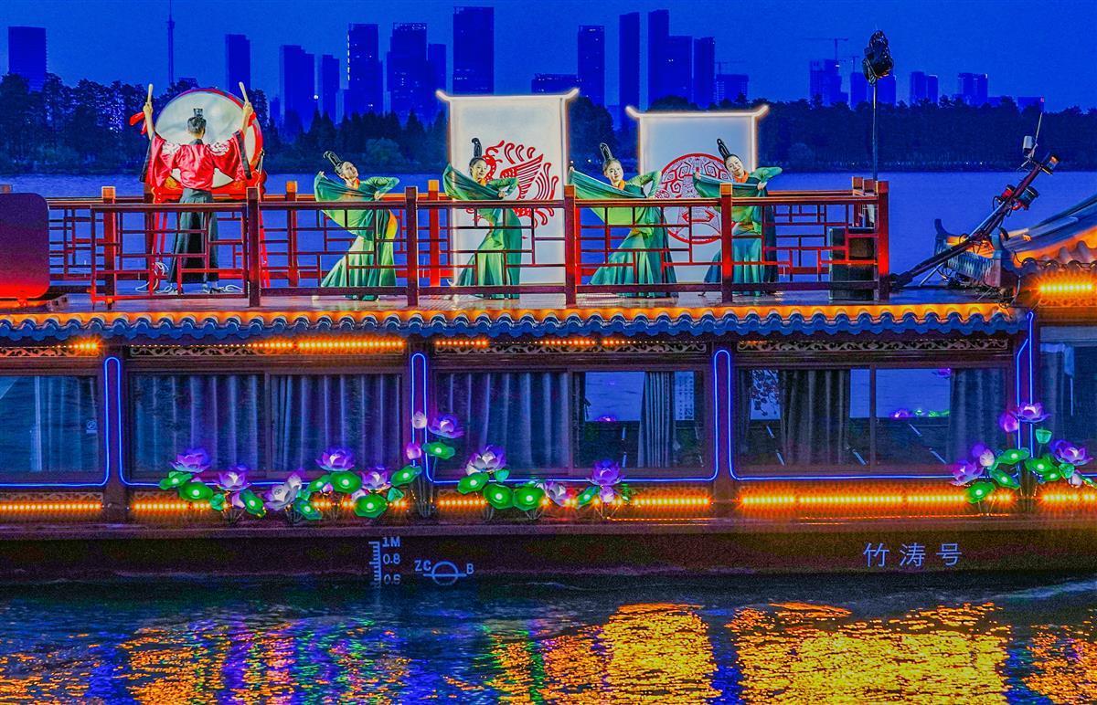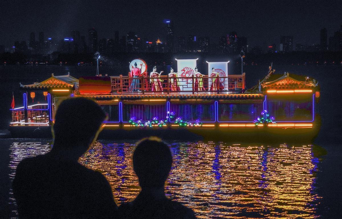据了解,今年八月,由武汉东湖文旅集团打造的东湖游船夜游项目正式亮相,一经“上映”便获得市民游客的青睐。中秋、国庆双节前夕,东湖游船夜游项目“月影东湖 楚韵画舫夜”将再次升级,以全新的国风故事演绎,为广大市民和游客带来一场视觉与文化的双重盛宴。
