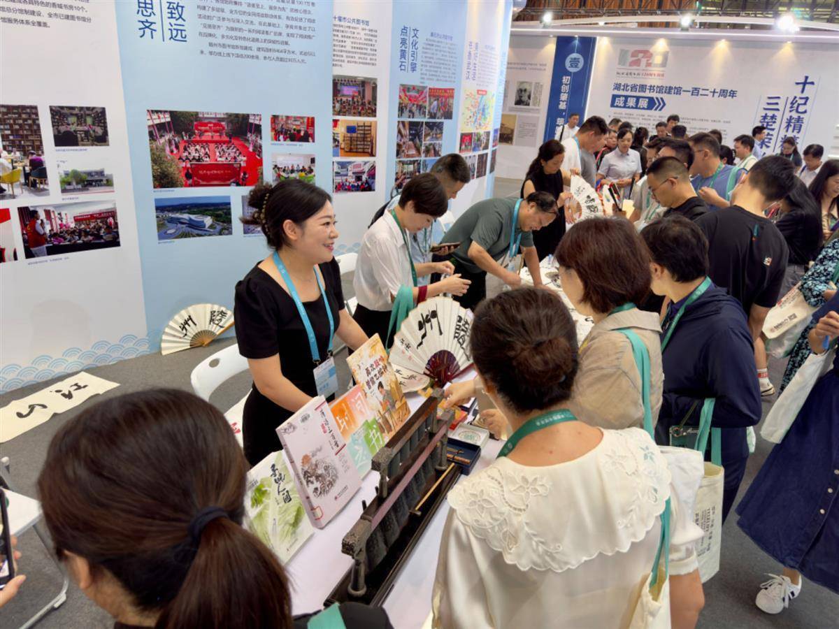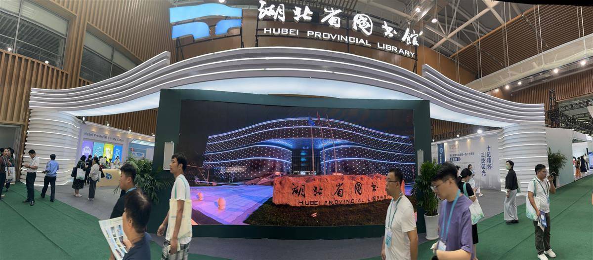 展厅另一边,“书香荆楚 智启未来——湖北省公共图书馆新时代发展掠影”展区图文并茂地展示了党的十八大以来,湖北全省公共图书馆在典藏文献、服务效能、业务能力、新技术运用、新型阅读空间建设等方面的发展成果。