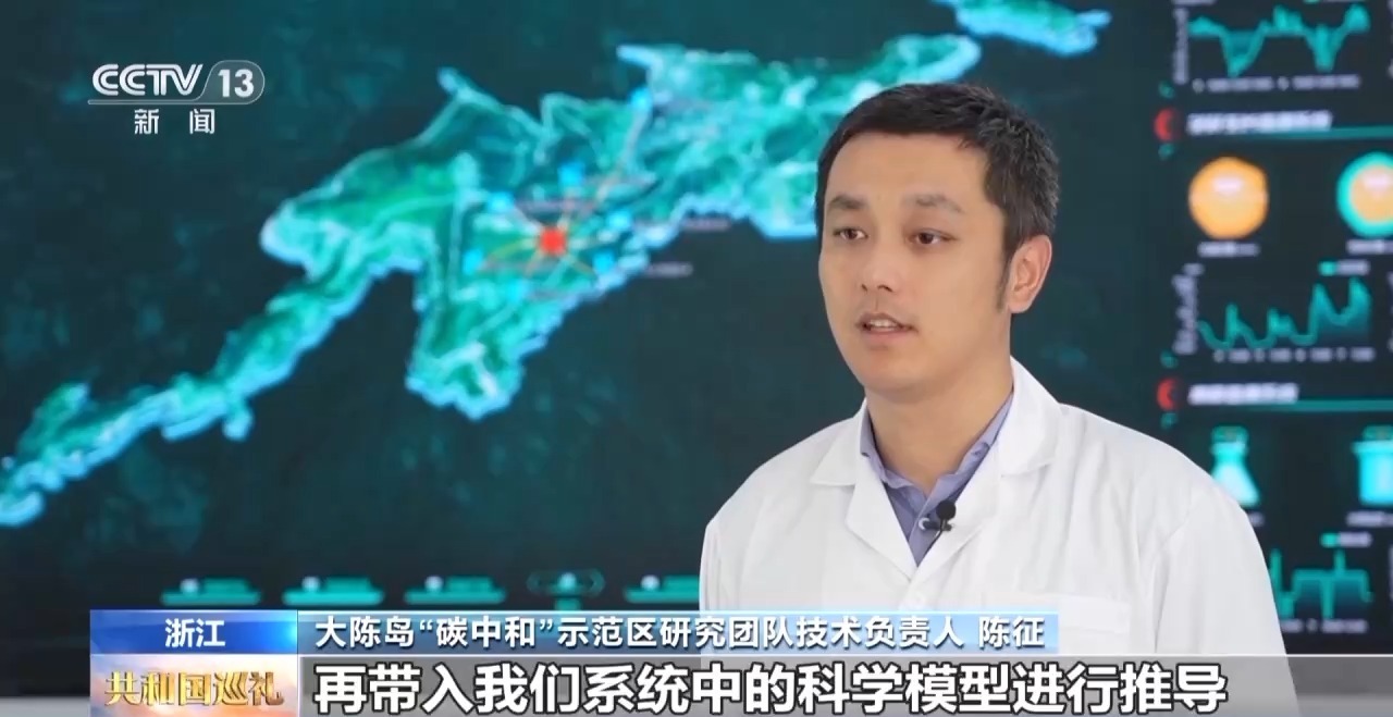 大陈岛“碳中和”示范区研究团队技术负责人 陈征:前期我们的科研团队在大陈岛的典型样地上布置了监测仪器,这样可以获得实时在线的数据,再带入我们系统中的科学模型进行推导,那么就可以获得我们现在看到的碳核算结果。