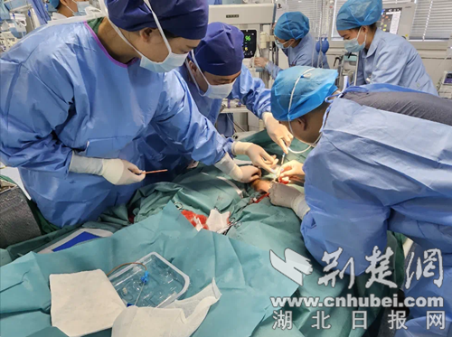 重症医学科周畅军主任带领医生和护士在对患者持续心肺复苏的同时,手术室护士迅速完成了开台消毒铺巾;麻醉科副主任李涛在确保患者在手术过程中处于无痛且安全的状态同时完成了设备调节和管道排气预充;杨昌明主任和血管介入科毕仁兵主任凭借熟练的专业技能,进行动静脉插管植入……