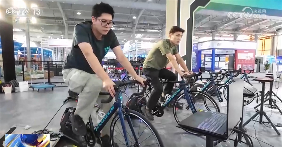 传统的体育项目往往需要广阔的参赛场地,而运动员们现在体验的数智骑行却可以在一室之内跨越北京城区的多个地标,完成长达50公里的比赛。通过联网,它还能完成跨省市的多人大规模竞赛。更值得一提的是,当屏幕中的赛道进入爬坡时,智能骑行台还可以模拟坡度的缓急来给参赛者施加相应的阻力。