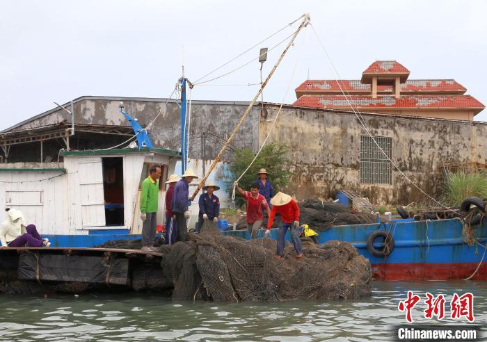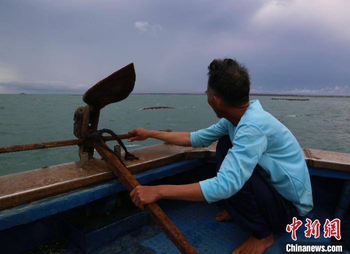 9月11日,海南临高后水湾一处码头,渔民将深水网箱的渔网拉上岸修补。超强台风“摩羯”给海南农业带来逾百亿元人民币经济损失,其中渔业经济损失占比过半。中新社记者 王晓斌 摄