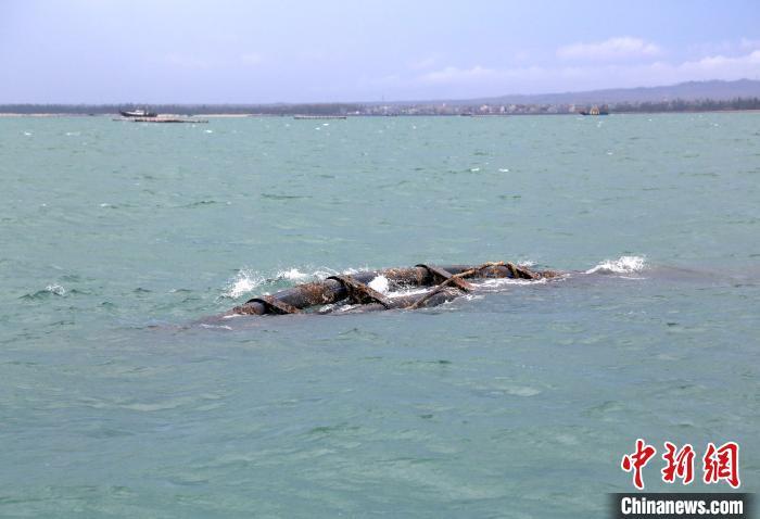 9月11日,海南临高后水湾一带的深水网箱。超强台风“摩羯”给海南农业带来逾百亿元人民币经济损失,其中渔业经济损失占比过半。台风过后,养殖渔民通过潜水等方式,详细查验深水网箱的受损状况,为后续的维修工作做准备。图为一口周长80米的网箱,只剩一小节露出水面。中新社记者 王晓斌 摄