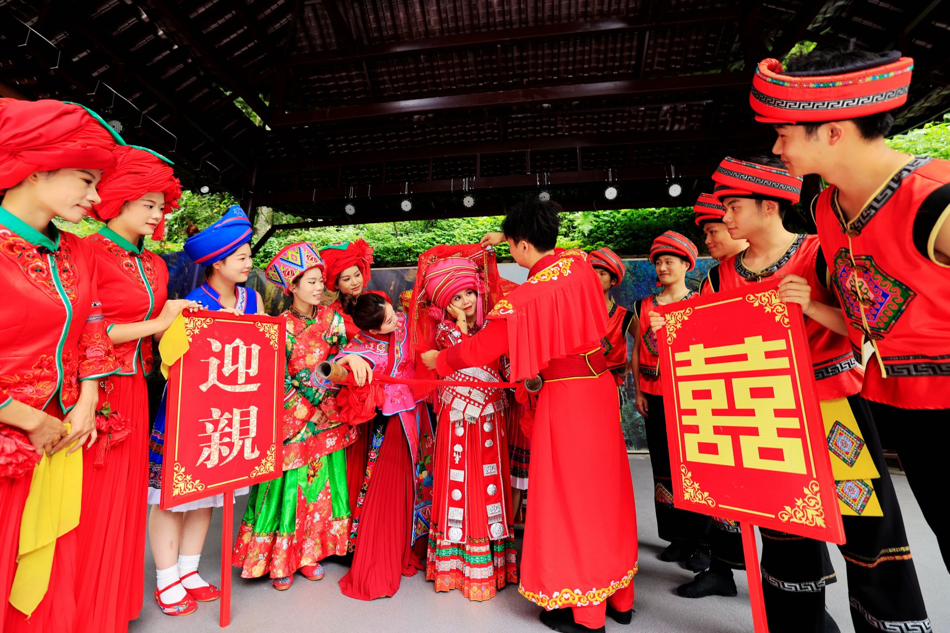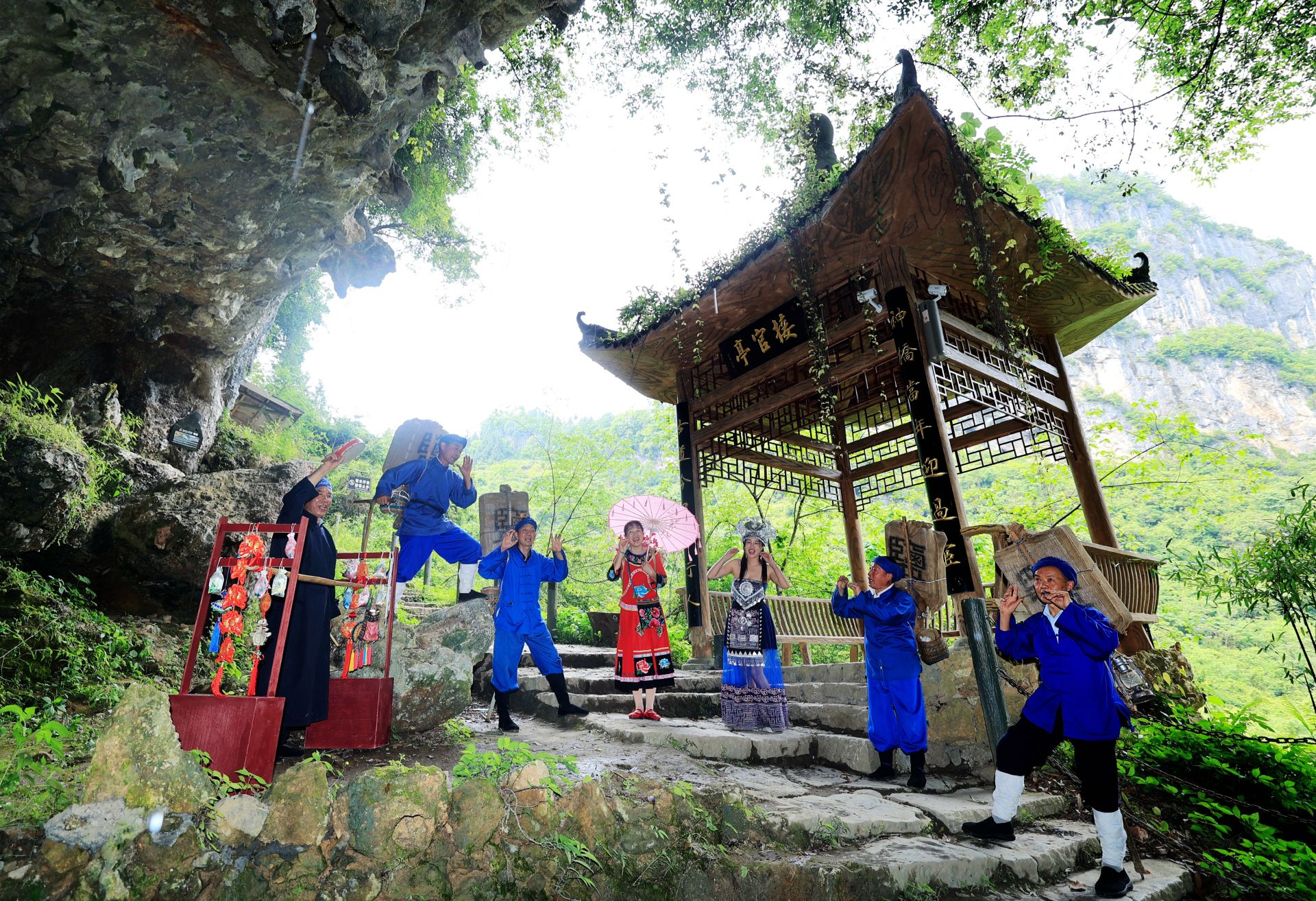 游客、网红互动演艺《地心之恋一一四姐出嫁》(景区供图)