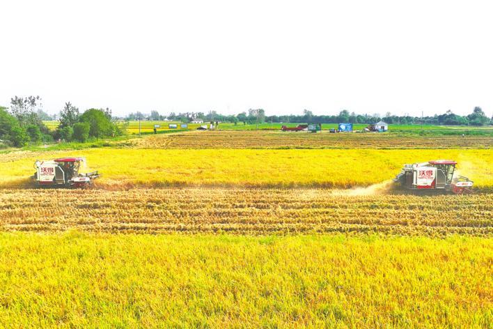 枝江市永隆水稻种植专业合作社秋收正忙。