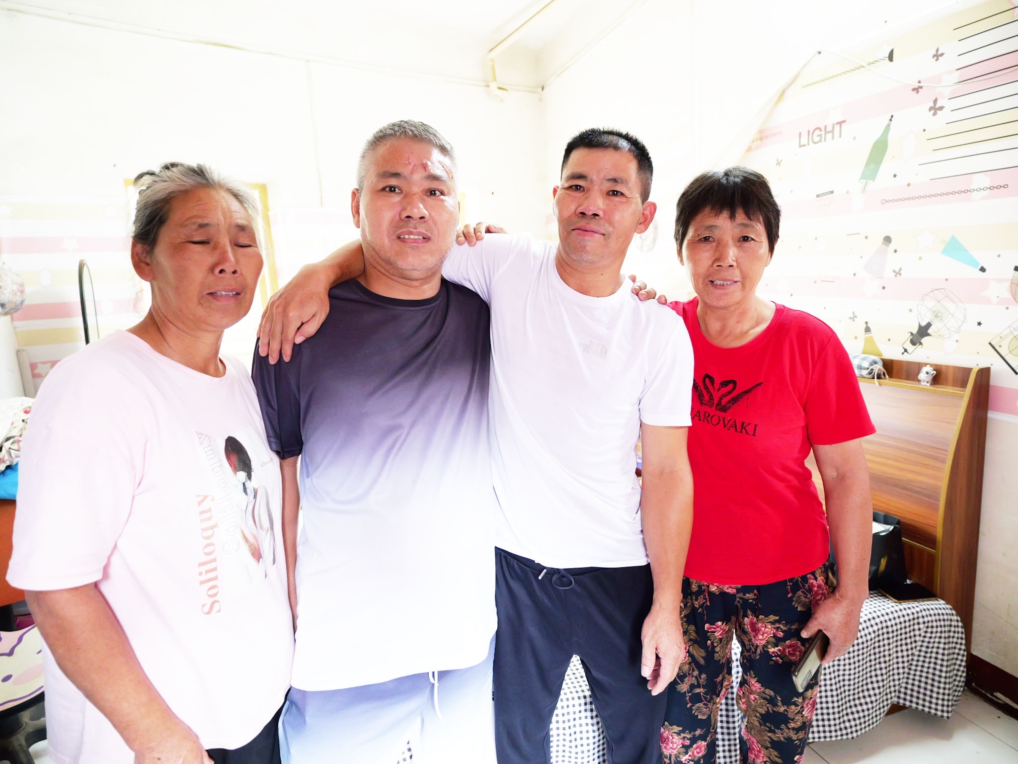 黄茶根回忆起弟弟黄任保小时候腿上曾被热粥烫伤,看到弟弟腿上的伤疤仍在,他不禁湿红了眼眶。黄任保说:“我们的父母曾四处寻找哥哥没有找到,时常念叨着我们家还有一个人在外面没有团圆。可惜这么多年过去,两位老人都已经去世,只能我们兄弟姐妹们团圆了。”