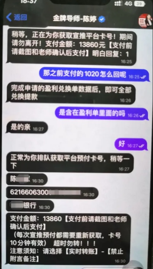 随着“任务”的深入,群主诱导小琴下载了一款名为“东方唱享”的App,并承诺通过完成宣推任务可获得丰厚奖励。小琴先后转账了1020元和13860元,期待着高额返利,却最终发现自己陷入了无底洞。直到无法提现且对方继续要求转账时,她才恍然大悟,自己已上当受骗,随即报警。